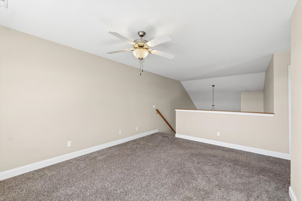 Don't Miss Your Opportunity! Step into this spacious 1.5-story zero-lot home with beautiful lake views from both the living space and the primary suite. A vaulted ceiling greets you upon entry and opens into a light-filled great room featuring hardwood floors and a cozy gas log fireplace. The open kitchen with breakfast bar is perfect for casual dining and entertaining. The first-floor primary suite offers convenience and privacy with a full bath, walk-in closet, and lake views. Upstairs, a versatile loft area makes an ideal office, playroom, or second living space, while the large second bedroom also includes its own walk-in closet. This home combines comfort, flexibility, and style-all in a serene lakeside setting!