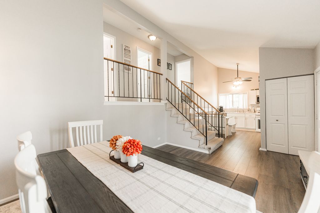 Discover this charming 3-bedroom, 2-bath home in the desirable Pinebrook subdivision! Natural light fills every room, creating a warm and welcoming atmosphere. The living room features a cozy gas fireplace and flows into the kitchen, complete with white cabinetry and an eating area. Upstairs, you'll find the primary bedroom, a second bedroom, and a full bath. The finished lower level provides additional living space with a family room and a third bedroom-perfect for guests, a home office, or a playroom. A sub-basement offers plenty of extra storage. Step outside to enjoy a fenced backyard with a storage shed, plus the convenience of a 2-car attached garage. This home also features many recent updates, including: New HVAC, new hot water heater, new dryer, roof (3 years old), washer (3 years old), dishwasher (3 years old), microwave (3 years old), and kitchen cabinets/counters (3 years old). Main Sq Ft: 892, Finished Lower Sq Ft: 842, Approx. Total Finished Sq Ft: 1734. Ideally located near I-355, shopping, and dining, this home combines comfort, functionality, and style in a prime location.