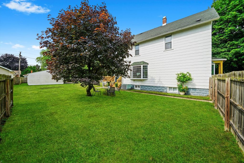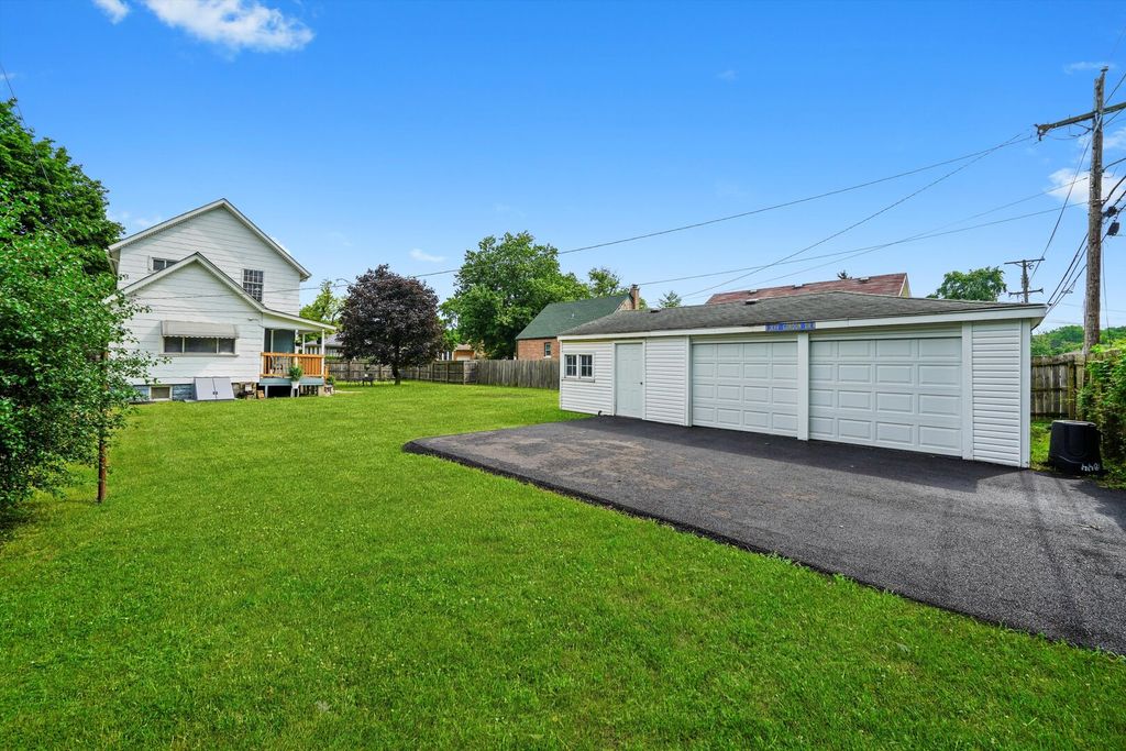 Welcome to this updated 4-bedroom, 2-story home, perfectly situated on a fully fenced double lot in the heart of Blue Island! Freshly painted in soft neutral tones, the spacious living room features brand-new carpeting, while the dining room and den showcase refinished original hardwood floors that radiate warmth and timeless charm. Upstairs, you'll find all-new laminate flooring in the bedrooms and updated windows for added comfort and energy efficiency. The second-floor bath includes a brand-new tub and updated plumbing, while the first-floor bath retains its vintage character with the original clawfoot tub-now enhanced with a modern handheld shower. Enjoy outdoor living on the newly built front porch or the oversized back porch, complete with new stairs and spindles-perfect for relaxing or entertaining guests. The detached garage is a true highlight, offering a new overhead door, service door, and an additional workshop area for extra storage or hobby space. A New driveway adds even more appeal and convenience. The furnace has been inspected...and City of Blue Island inspection has approval for occupancy. This home beautifully combines classic character with thoughtful modern updates-ready for you to move right in and enjoy!