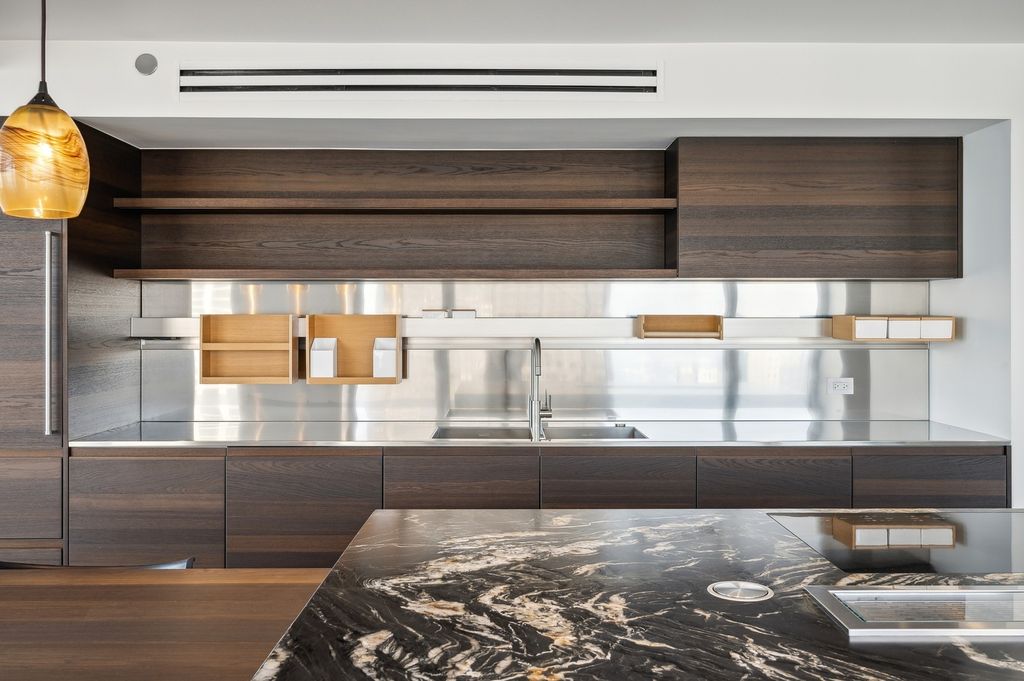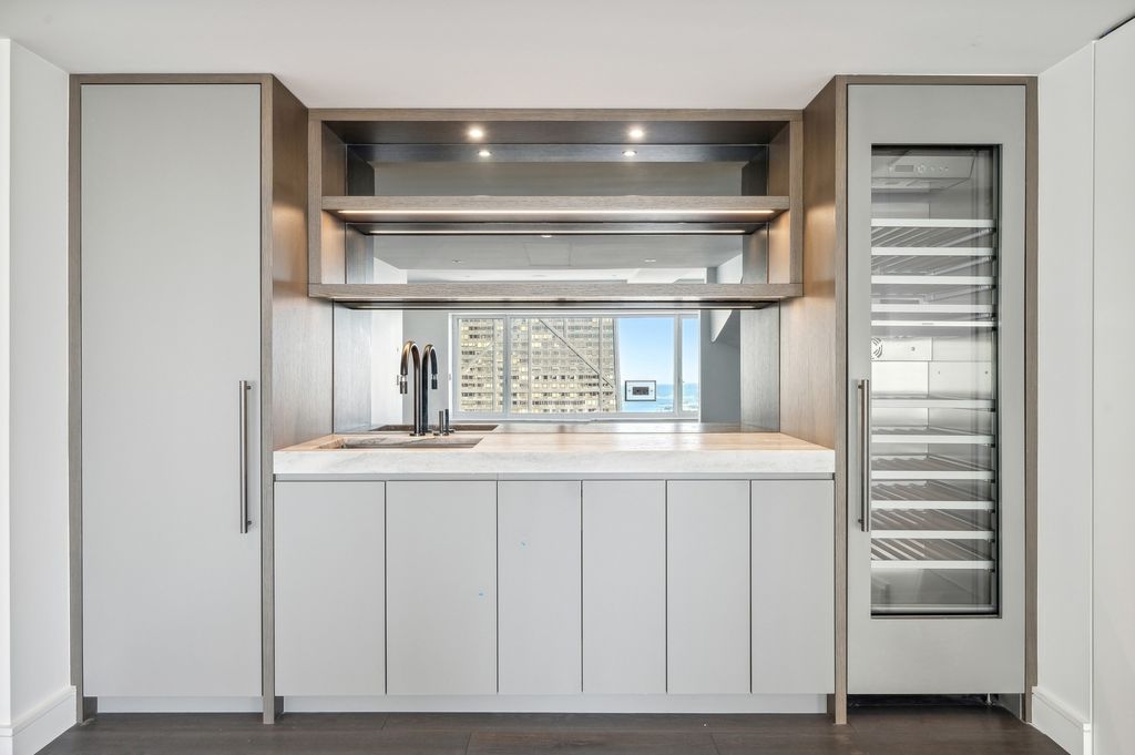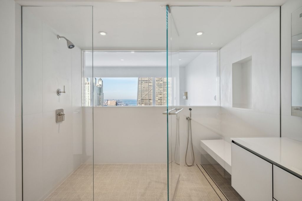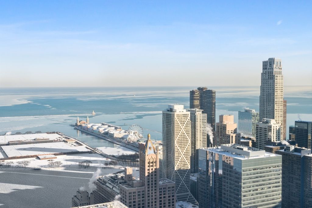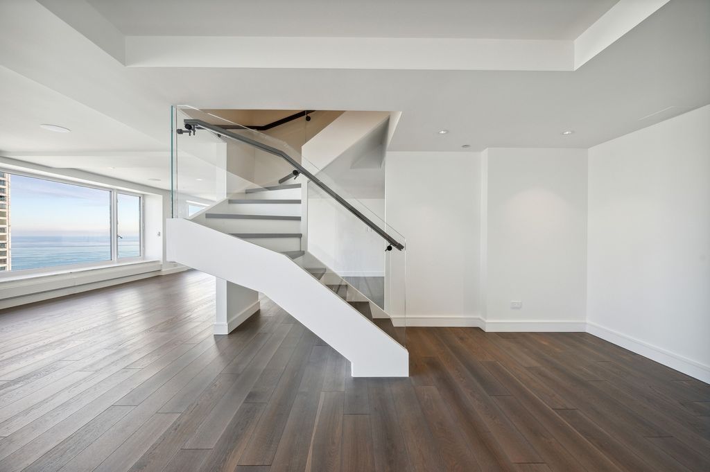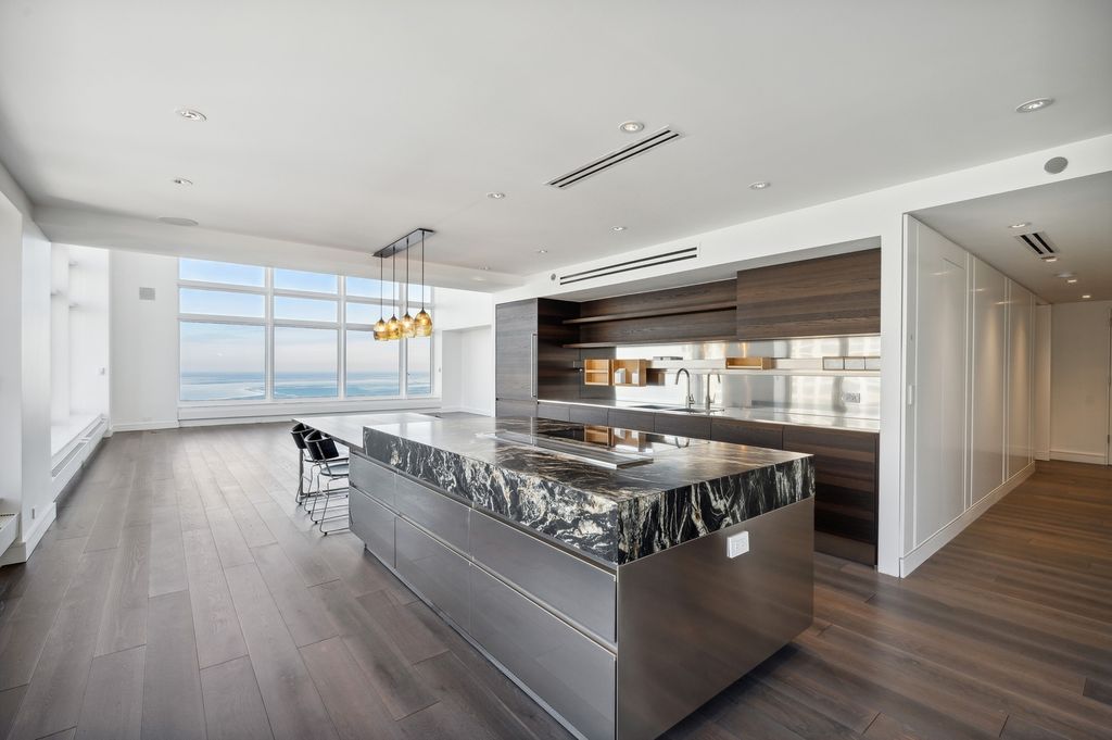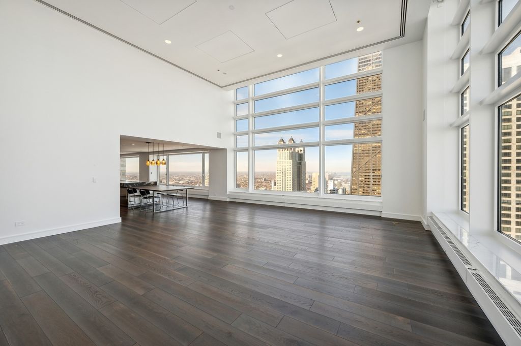 Exquisitely modern with unparalleled panoramic views of the Chicago skyline and Lake Michigan, Residence 60M1 at 161 E. Chicago Avenue is a masterfully reimagined 3-bedroom, 3.5-bath duplex penthouse within the exclusive Olympia Centre. A 2023 full-scale renovation, this 5,400-square-foot corner home represents the pinnacle of luxury design, craftsmanship, and technology. The main level unfolds into a dramatic two-story great room showcasing 85 feet of contiguous north-facing windows and 45 feet of east-facing windows, bathing the interiors in natural light and framing mesmerizing city and lake vistas. Perfectly tailored for grand entertaining and refined daily living, this open-concept space encompasses a formal living area, a lounge/den with a custom wet bar and full-height Gaggenau wine refrigeration, a chef-inspired kitchen, and an elegant family room-all unified by seven-inch-wide white oak flooring. At the heart of the home, the Arclinea-designed kitchen impresses with fume oak cabinetry, a leathered quartzite island, Sub-Zero and Wolf appliances, and an integrated eight-foot dining table for effortless gathering. The primary suite on the main level is a true retreat, featuring a 15' x 14' custom B&B Italia dressing room with a leather-wrapped island and an ensuite spa bath clad in Breccia Capraia marble, complete with a Roman shower, Artelinea glass-top vanity, and a bubble jet soaking tub. Upstairs, two additional bedrooms each offer walk-in closets, designer ensuite baths, and captivating skyline views. Every detail throughout the residence has been thoughtfully curated-marble powder room, dual laundry rooms, motorized shades, Waterworks fixtures, Toto intelligent toilets, custom millwork for storage, integrated surround sound, Savant smart home automation, and Araknis wireless networking. A second-floor entrance adds convenience and privacy. Residents of Olympia Centre enjoy five-star amenities, including 24-hour door staff and concierge, a fitness center, indoor pool and spa, entertainment suite, sun deck, and onsite parking. Perfectly positioned amid Chicago's most celebrated destinations-Michigan Avenue, the historic Water Tower, the John Hancock Building, the Museum of Contemporary Art, and the lakefront-and directly adjacent to Neiman Marcus, Residence 60M1 delivers uncompromising luxury and sophistication in the heart of it all.