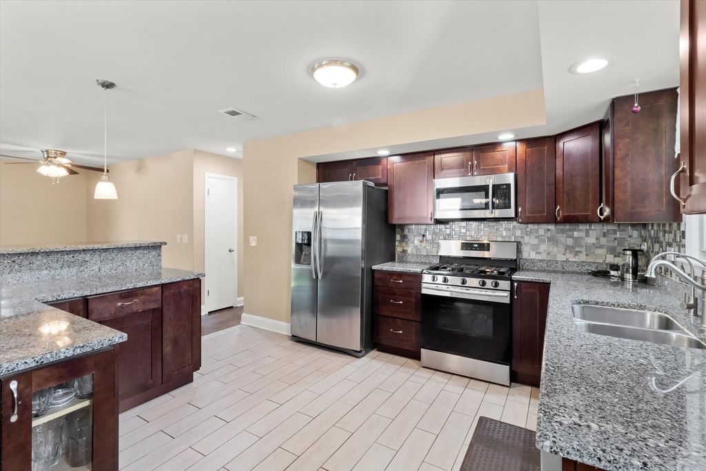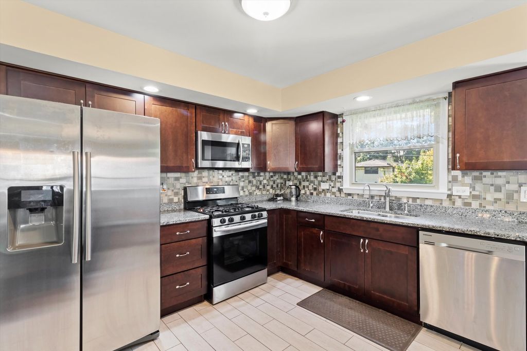 Step inside this stunning 5-bedroom, 3-bathroom split-level gem, where style and function meet in perfect harmony! The main level welcomes you with gorgeous hardwood floors and an open-concept living room drenched in natural light-an inviting space that flows effortlessly into the dining area and kitchen. Here, you'll find granite countertops, stainless steel appliances, a chic backsplash, tiled floors, a breakfast bar, and plenty of storage to keep everything organized. Just off the kitchen, step out onto the spacious back deck-perfect for morning coffee, summer grilling, or simply unwinding. Upstairs, three generous bedrooms and a full bathroom provide comfort, while the primary suite offers its own private retreat with an attached full bath and walk-in shower. Downstairs, the warm and welcoming family room features a classic brick, wood-burning fireplace for those cozy nights in. The lower level also includes two additional bedrooms, another full bathroom, a second eat-in kitchen, laundry, and utility space-making it ideal for an in-law arrangement. Outside, the charm continues with beautifully manicured landscaping, a fenced backyard for privacy, a patio ready for entertaining, a handy storage shed, and attached garage. This home has it all-spacious living, modern updates, and outdoor beauty-wrapped up in one irresistible package!