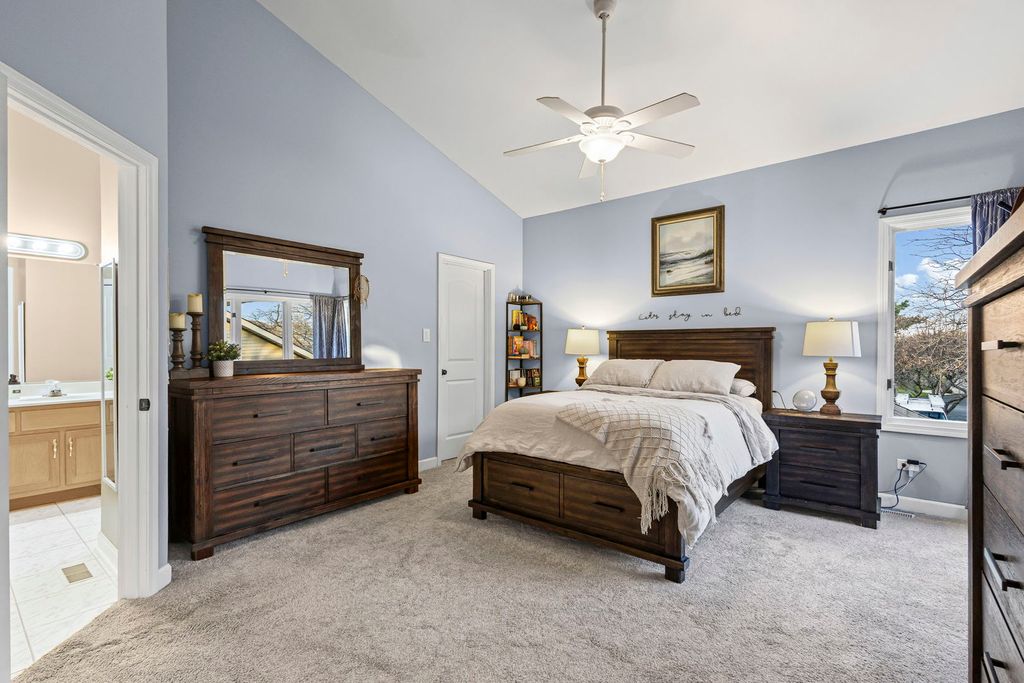 Stunning, move-in ready 2-story townhome in a prime Tinley Park location! This property features 2 bedrooms and 1.5 bathrooms with a private, ground-level entry and an attached 2-car garage. The main level showcases a beautifully updated kitchen with quartz countertops, stainless steel appliances, and an abundance of natural light. Upstairs the primary suite is a luxurious retreat, boasting a generous walk-in closet and a large en-suite spa-like bath with a soaker tub, double sinks, and a separate walk-in shower. The 2nd bedroom completes the upper level. The partially finished basement is a notable feature which offers flexible living space with plenty of storage. Enjoy a serene atmosphere on your private deck with a gorgeous pond view. Schedule your private showing today!