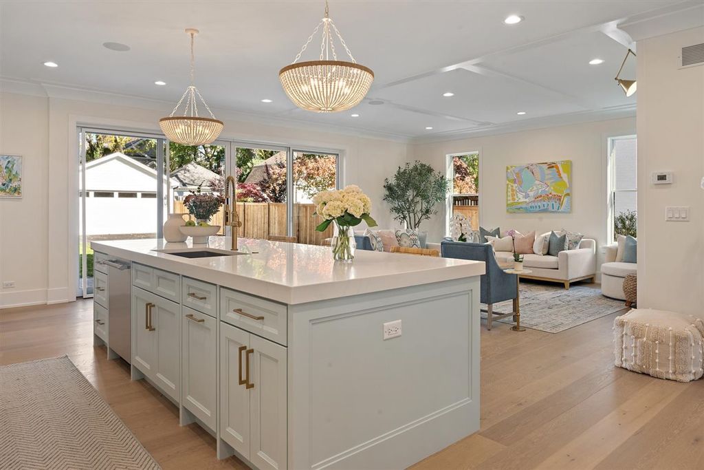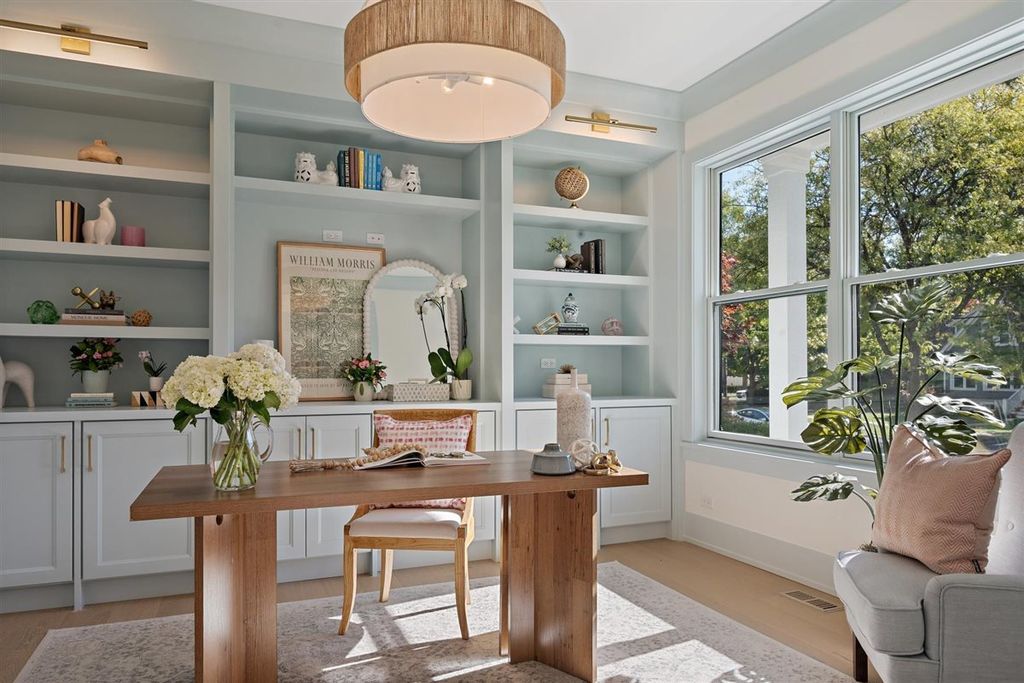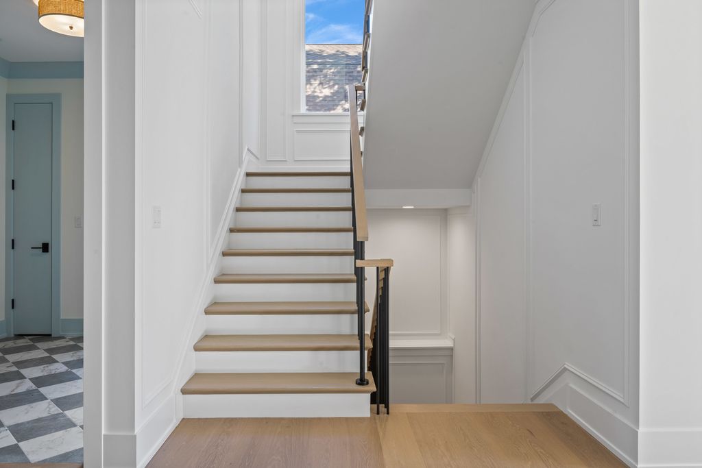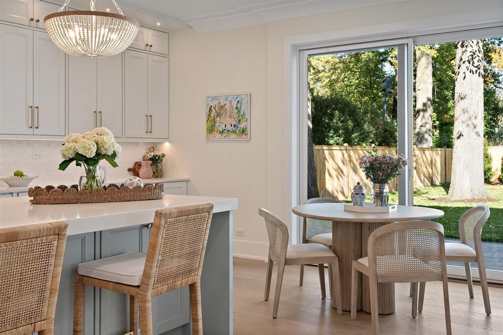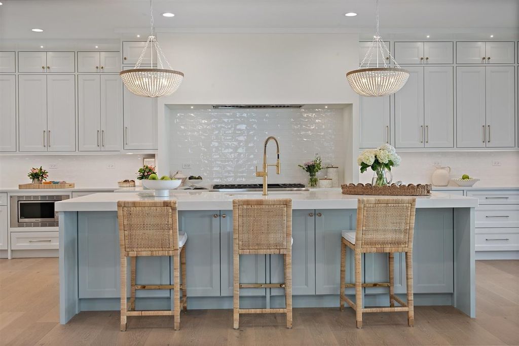 Just completed October 28th, this breezy, bright, and beautifully coastal new construction by one of the North Shore's premier builders captures the essence of modern beachy living. From the moment you arrive the sea salt blue shutters set the tone for what's inside: a sun-kissed sanctuary where craftsmanship meets coastal charm. Soaring ceilings, hand-beveled wide-plank white oak floors, Marvin windows, Ann Sacks tile, and layers of quartz and fine white marbles, all woven together with exquisite millwork and a refined, airy palette. Foyer opens to a coastal-inspired office wrapped in soft pale blue cabinetry and custom glass French doors. Formal dining room connects seamlessly to a fully outfitted butler's pantry, leading into the show-stopping Chef's kitchen-straight out of a Serena & Lily magazine. Thick white & light-veined quartz countertops, Visual Comfort pendants, custom cabinetry with polished brass accents, Thermador appliances and a soft blue island anchoring the room with seating for 5. Open-concept kitchen to family room centered around a black surround gas fireplace flanked by custom built-ins, bathe in sunlight through expansive floor-to-ceiling glass doors that open to the back patio and lush backyard. Mudroom with built in bench, gray and white checkered floors and sky-blue cabinetry and a designer level powder room complete this level. Second level with 4 ensuite bedrooms, each with its own beautifully tailored bath and fully built-out closets. Luxury primary suite a five-star retreat, featuring vaulted ceilings, large walk-in closet and a luxe white spa bath with dual vanities, walk-in shower, and soaking tub. Second level laundry room with double washer and dryer. Sun-drenched third floor offers endless versatility with bedroom, full bath, playroom, and office space. Fully loaded lower-level w/ a glass-enclosed gym with rubber flooring & mirrored walls, sleek wine cellar with custom racking and glass door, bedroom, full bath, and a large recreation room with custom media center and wet bar. This beachy new construction home delivers the ultimate living experience-a one-of-a-kind opportunity set in a prime Winnetka steps to it all!