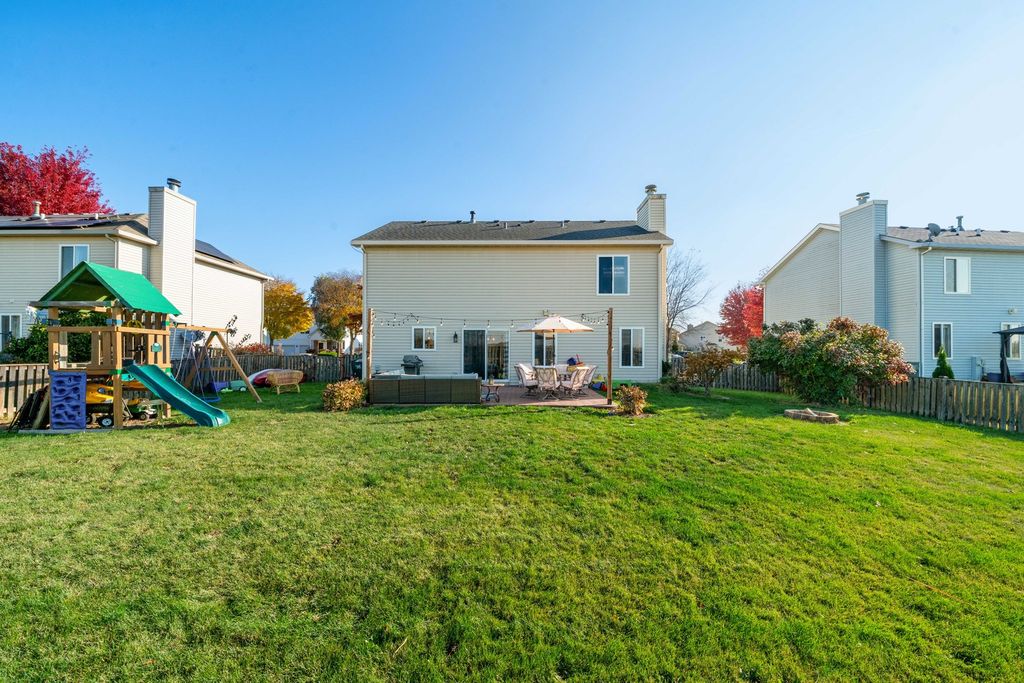 Welcome Home for the Holidays! Step into this spacious 2,072 sq. ft. two-story home featuring 4 generously sized bedrooms and 2.5 baths, perfectly designed for comfort and everyday living. The heart of the home is the inviting family room with a cozy fireplace-ideal for gathering with loved ones on chilly evenings. The open layout flows effortlessly into the kitchen and dining area, making entertaining a breeze. Upstairs, you'll find four comfortable bedrooms, including a relaxing primary suite with plenty of space to unwind. Outside, enjoy a fully fenced yard that backs to an open field-offering privacy and peaceful views. A stamped concrete patio provides the perfect spot for weekend barbecues or a cup of coffee on crisp fall mornings. The two-car garage adds convenience and extra storage. The roof was replaced in 2023, the kitchen was freshened up with new light fixtures, a backsplash and flooring in the family room, livingroom and foyer in 2022. This home is waiting for you to make new memories just in time for the holidays. Don't miss your chance to make this warm and welcoming house your new home!