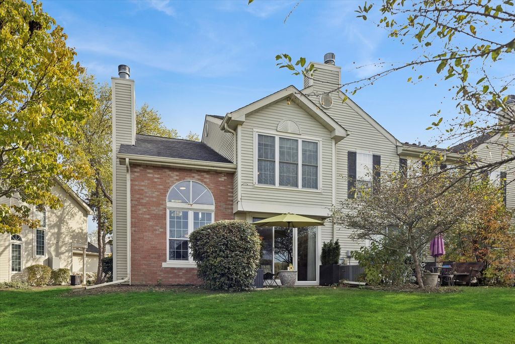 Beautiful End-Unit with private entrance, Loft and Pond View. Welcome to Glendale Lakes. This stunning unit offers 2 spacious bedrooms, a versatile loft space, and 2.5 beautifully updated bathrooms. The open-concept layout features a dramatic two-story living room with a cozy fireplace and abundant natural light streaming through large windows. Your updated custom kitchen is a chef's dream, complete with granite countertops, stainless steel appliances including a double oven, and a stylish tile backsplash. Enjoy peaceful mornings or relaxing evenings on your private patio overlooking a tranquil pond. Additional highlights include updated bathrooms, generous storage, and an airy, open feel throughout. This move-in-ready home combines comfort, style, and a serene setting-all in a prime location close to shopping, dining, and commuter routes.