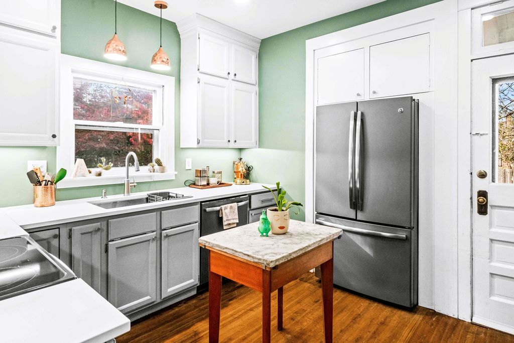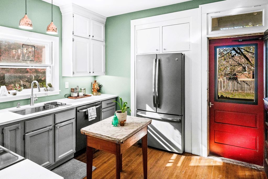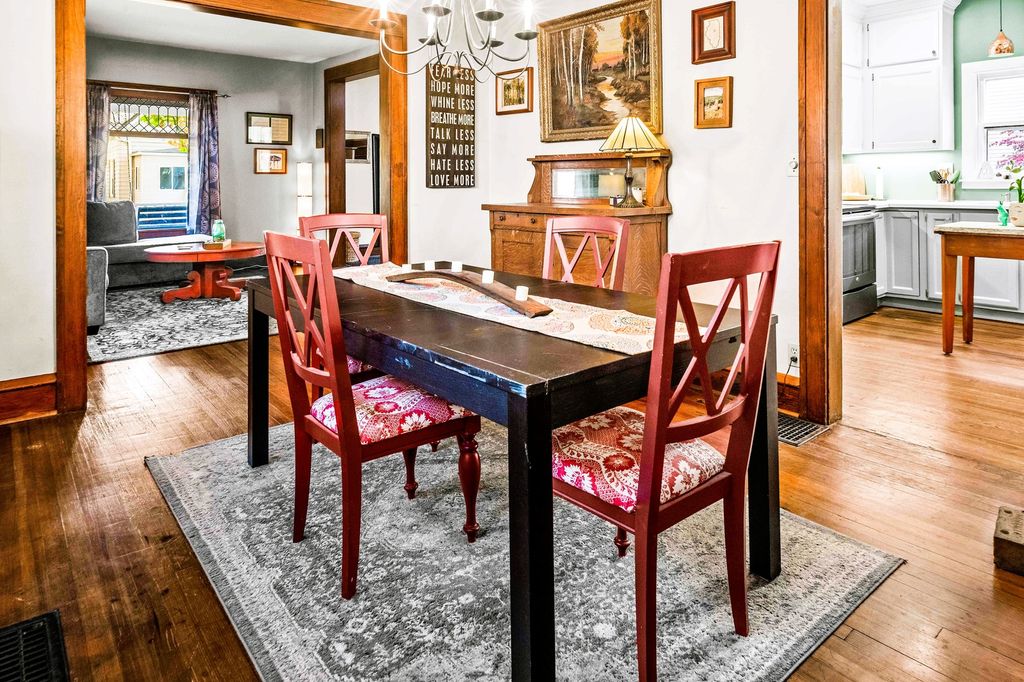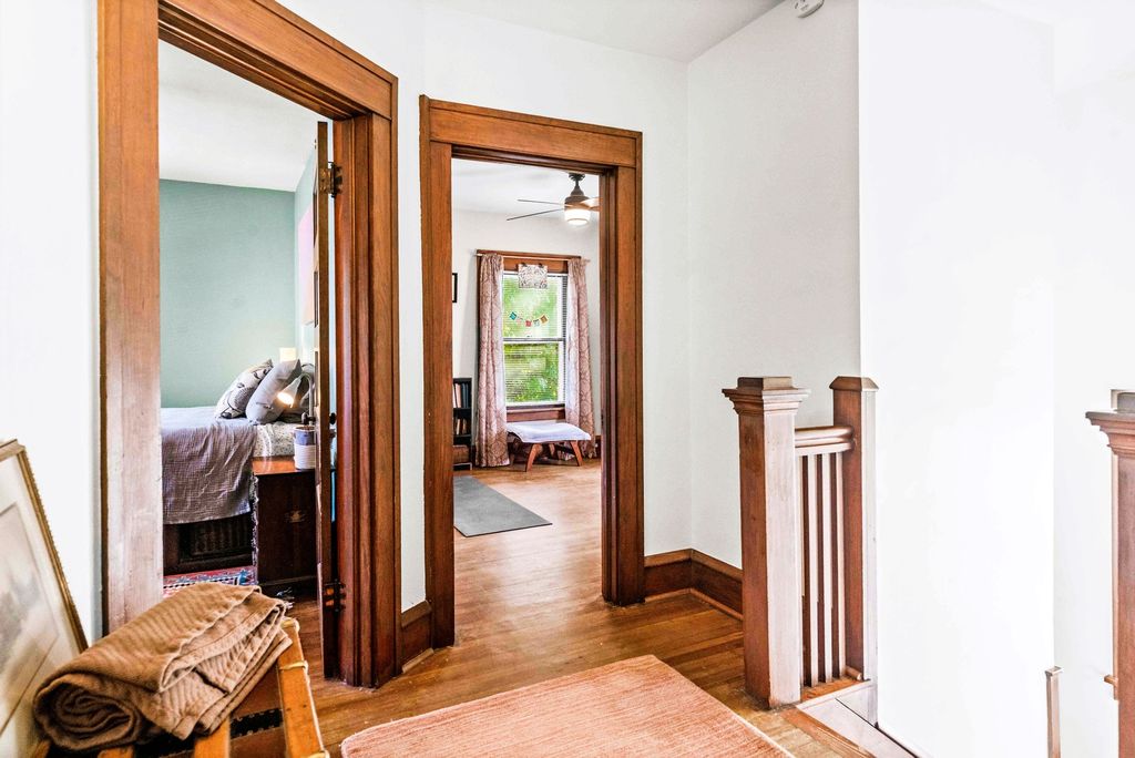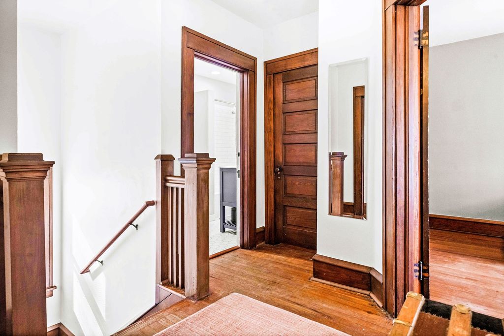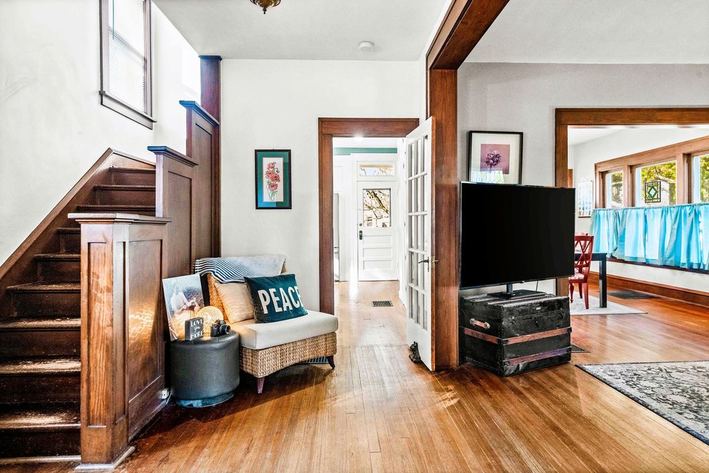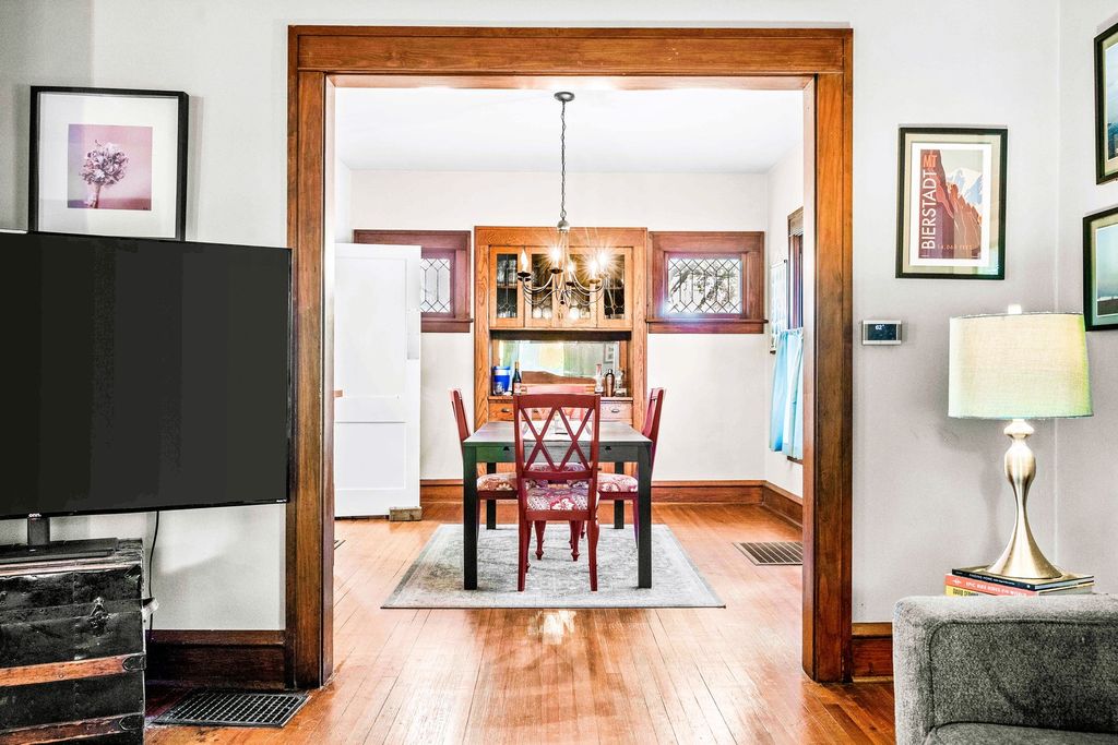 The breathtaking beauty and charm of Founders Grove on Bloomington's historic east side is like no other! Tucked on wistful Willard Avenue surrounded by stately homes you'll find this cheerful buttercream American foursquare has been carefully improved by the current owners over the last two decades, while still honoring the original character and charm of this century old beauty. Pass through the expansive covered porch and into the welcoming foyer where you'll be greeted by original rich hardwoods, trim and panel doors, framing the open and airy 9' ceilings lifting your eyes and inviting you to explore more! Striking open staircase, original wainscoting and leaded glass greet you at the door and set the tone for the style of this home, a hint of the true craftsmanship and attention throughout. Follow the hardwoods into the generously sized family room and open-concept formal dining room featuring a wall of windows and stunning built-in hutch with leaded glass and plenty of storage to set the tone for entertaining evenings. Completely remodeled kitchen (2020) offers charming style, functionality and modern upgrades including stainless dishwasher, built-in microwave, glass cooktop range, undermount sink and side-by-side refrigerator. Fresh white cabinets stretching to the ceiling feature crown and brushed nickel pulls, sparkling quartz counters and copper sconces help to blend the old and new style of this welcoming space. Plenty of room for a floating island for extra prep and storage plus easy access to the expansive (original!) built-in pantry space with gorgeous glass fronts and upper/lower storage options. Head up the stately split stairs to find three generously sized bedrooms featuring (you guessed it) more exposed hardwoods and impressive closet space... and don't miss the walk-in closet conveniently located near the full bathroom for additional storage! The full bathroom remodel (2020) includes fresh white board & batten, striking hex tile floors, shower/tub combo with subway tile surround and tall vanity with quartz top and undermount sink, a modern contrast to the gleaming chrome fixtures! The lower level of this home has been wonderfully maintained with a fresh whitewash in the laundry area and finished drywall space for the sink and toilet, with potential to finish for a theater room, fitness or hobby space. Expansive storage space features the HVAC System (2018), Water Heater (2017) and updated Electrical Panel (2020) plus built-in work bench for tinkering and tools. The main sewer line of the home was also replaced in 2025 to ensure the health and durability of this home for decades to come! Nearby neighborhood elementary and easy access to the Constitution Trail, grocery, shops and restaurants make location ideal. Come see all 411 Willard has to offer!
