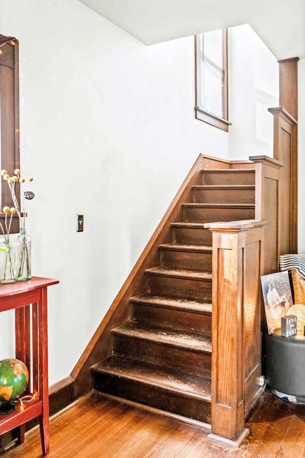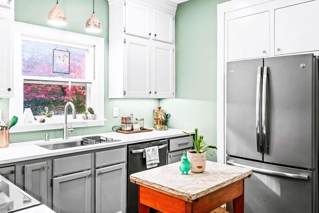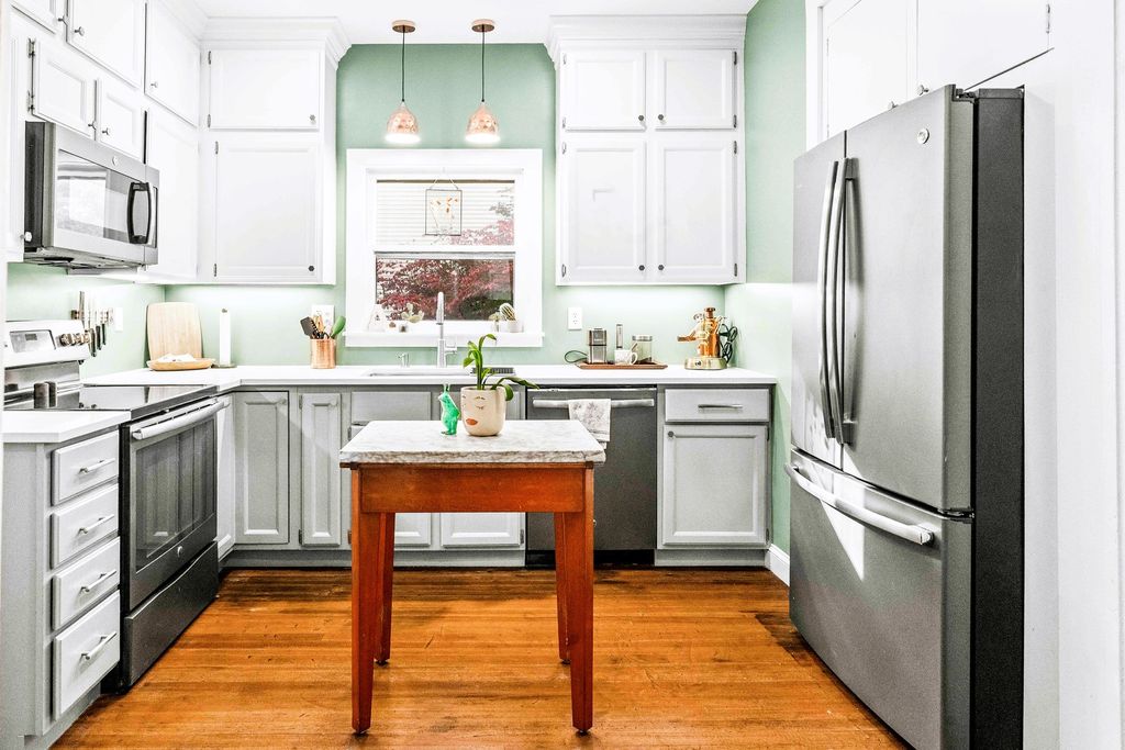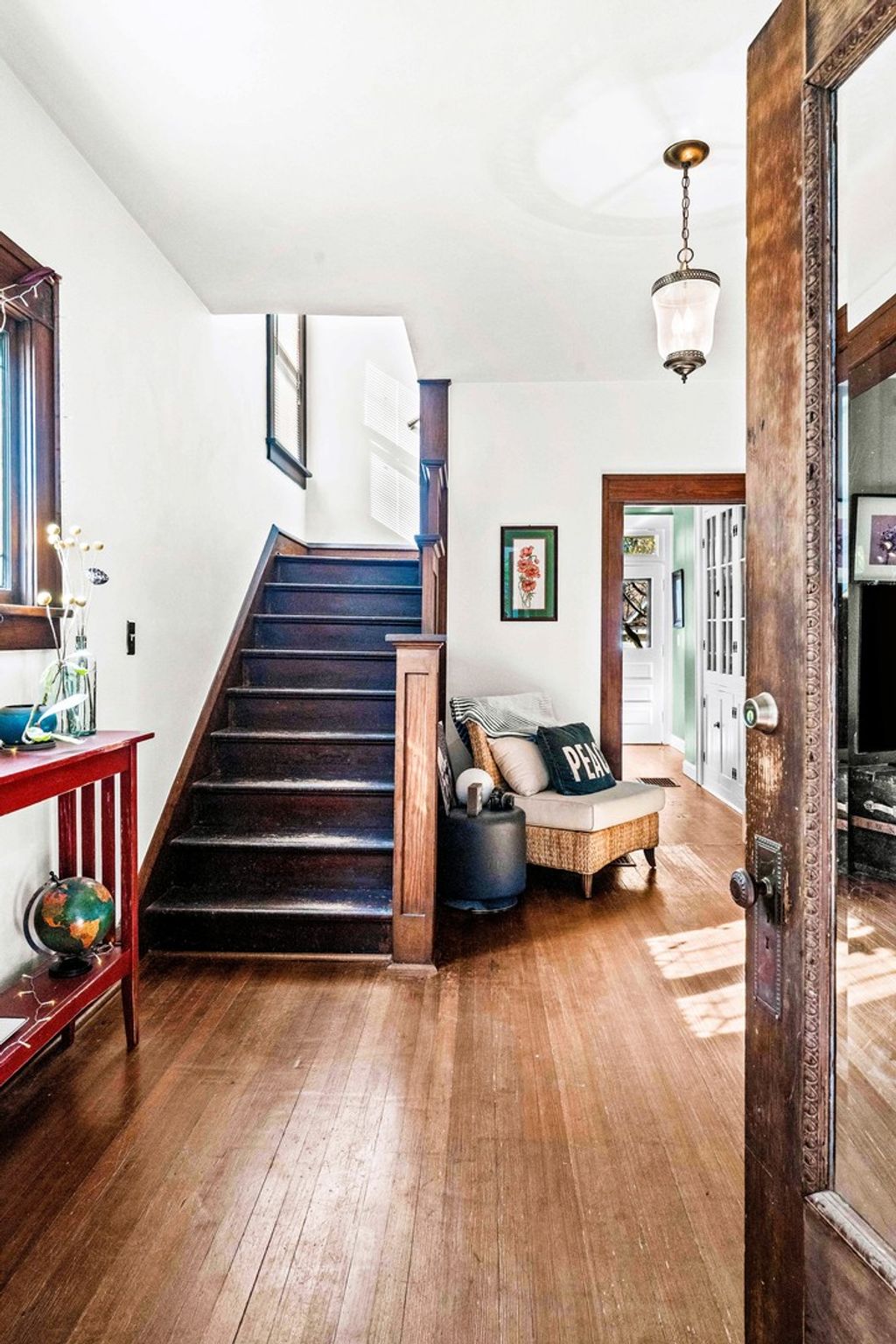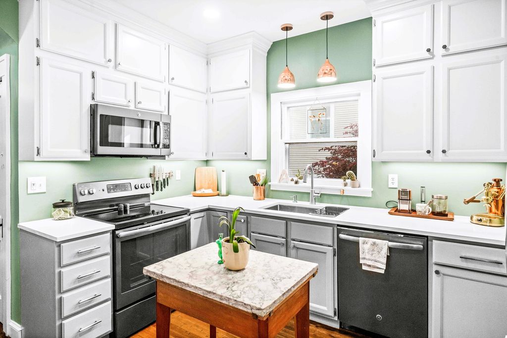 The breathtaking beauty and charm of Founders Grove on Bloomington's historic east side is like no other! Tucked on wistful Willard Avenue surrounded by stately homes you'll find this cheerful buttercream American foursquare has been carefully improved by the current owners over the last two decades, while still honoring the original character and charm of this century old beauty. Pass through the expansive covered porch and into the welcoming foyer where you'll be greeted by original rich hardwoods, trim and panel doors, framing the open and airy 9' ceilings lifting your eyes and inviting you to explore more! Striking open staircase, original wainscoting and leaded glass greet you at the door and set the tone for the style of this home, a hint of the true craftsmanship and attention throughout. Follow the hardwoods into the generously sized family room and open-concept formal dining room featuring a wall of windows and stunning built-in hutch with leaded glass and plenty of storage to set the tone for entertaining evenings. Completely remodeled kitchen (2020) offers charming style, functionality and modern upgrades including stainless dishwasher, built-in microwave, glass cooktop range, undermount sink and side-by-side refrigerator. Fresh white cabinets stretching to the ceiling feature crown and brushed nickel pulls, sparkling quartz counters and copper sconces help to blend the old and new style of this welcoming space. Plenty of room for a floating island for extra prep and storage plus easy access to the expansive (original!) built-in pantry space with gorgeous glass fronts and upper/lower storage options. Head up the stately split stairs to find three generously sized bedrooms featuring (you guessed it) more exposed hardwoods and impressive closet space... and don't miss the walk-in closet conveniently located near the full bathroom for additional storage! The full bathroom remodel (2020) includes fresh white board & batten, striking hex tile floors, shower/tub combo with subway tile surround and tall vanity with quartz top and undermount sink, a modern contrast to the gleaming chrome fixtures! The lower level of this home has been wonderfully maintained with a fresh whitewash in the laundry area and finished drywall space for the sink and toilet, with potential to finish for a theater room, fitness or hobby space. Expansive storage space features the HVAC System (2018), Water Heater (2017) and updated Electrical Panel (2020) plus built-in work bench for tinkering and tools. The main sewer line of the home was also replaced in 2025 to ensure the health and durability of this home for decades to come! Nearby neighborhood elementary and easy access to the Constitution Trail, grocery, shops and restaurants make location ideal. Come see all 411 Willard has to offer!
