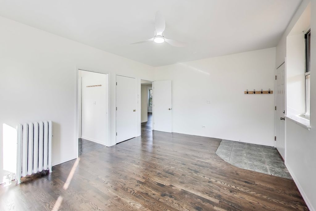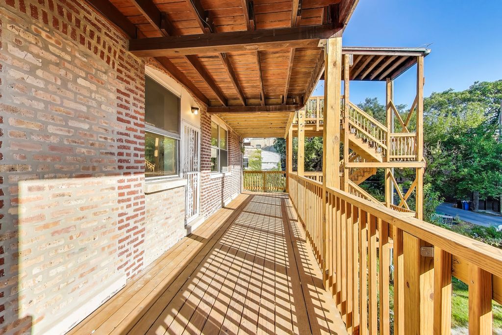 University of Chicago Campus. Bright and roomy with thoughtful details throughout, this 4-bedroom, 2-bath home offers comfortable living in a well-maintained building. The open kitchen includes 42" wood cabinets with crown molding, ample cabinet and counter space, AND a butler's pantry for easy prepping and additional storage space. The kitchen connects to the dining area with chandelier, large living room and a sun-lit sunroom. There are four large bedrooms that can easily accommodate large furniture, including a king-sized bed. Step out onto your rear deck, perfect for relaxing or entertaining. An off-street parking spot is included, and there's a community garden right next door. Convenient access to UofC, public transit, and local shopping. Strong, well-run association.