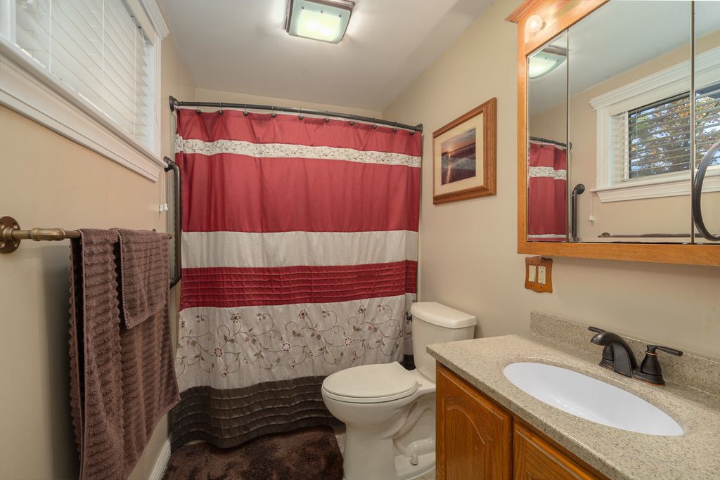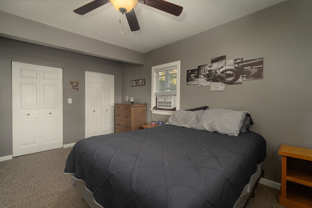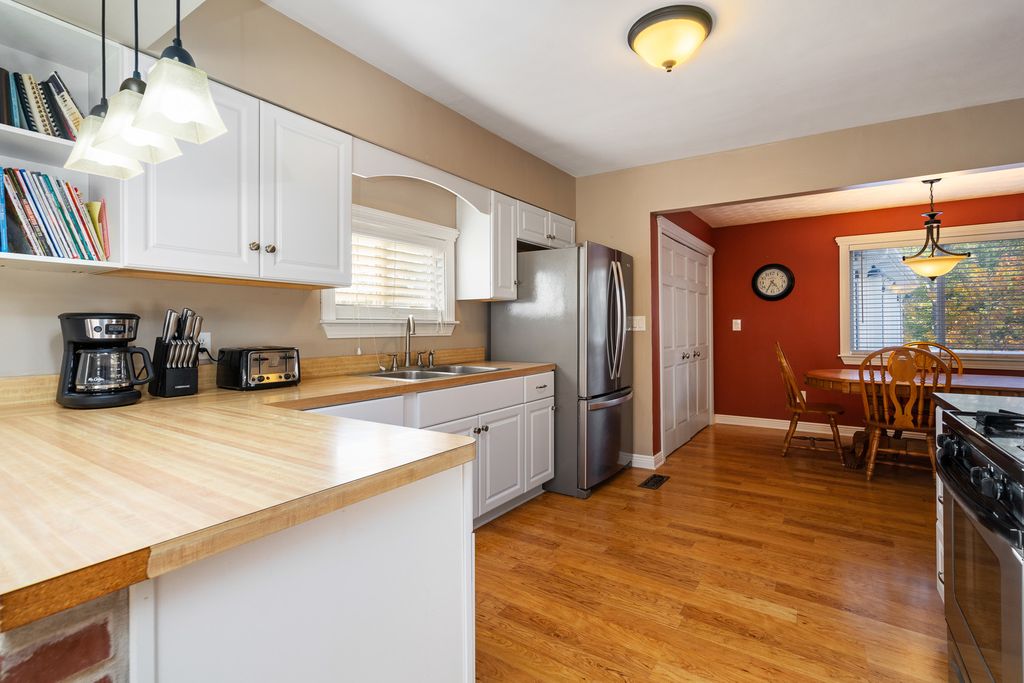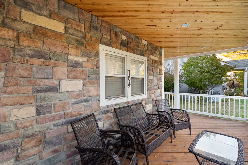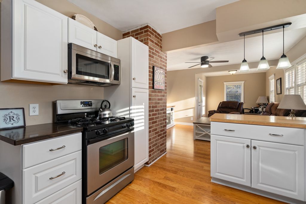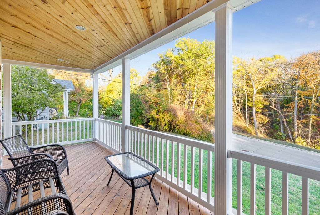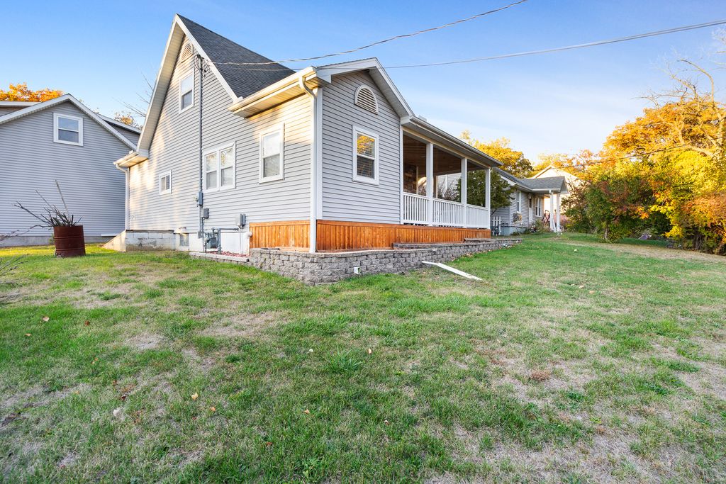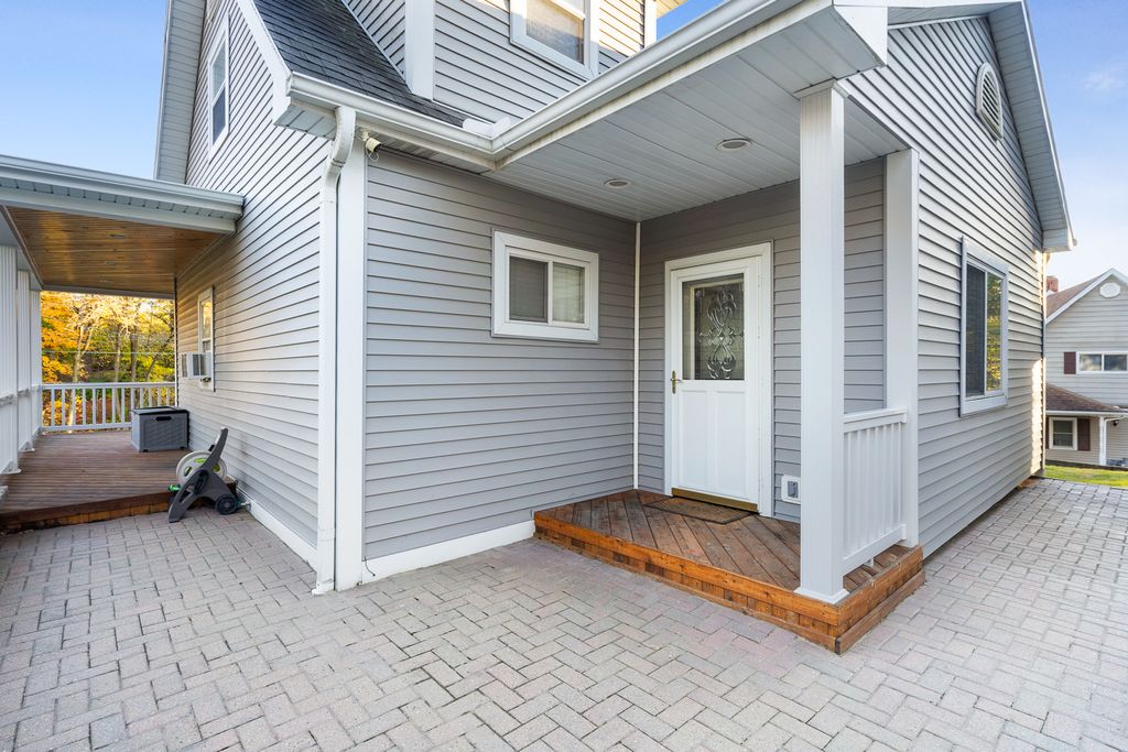 Nestled on a picturesque hill overlooking a scenic bluff, this wonderful and nicely updated home offers the perfect blend of comfort, character, and functionality. Enjoy peaceful mornings or relaxing evenings on the inviting covered wraparound porch, featuring a knotty pine ceiling and views that capture the natural beauty of the setting. Inside, you'll find a sun-filled living room with a stylish exposed brick design, and a stunning remodeled kitchen (updated just four years ago) showcasing white cabinetry, a pantry, and stainless steel appliances. The main-level master bedroom offers ample closet space, while the updated full bath adds modern appeal. Upstairs, you'll find two additional bedrooms, including one with a convenient half-bath en suite. The basement provides excellent storage or potential for future finishing. A true highlight of this property is the impressive 30' x 28' heated garage-complete with its own 100-amp electric service, two 10x8 overhead doors (perfect for trucks or larger vehicles), and a finished lofted second heated area currently used as a workshop. Additional updates include a newer furnace (3-4 years), a one-year-old refrigerator, a 10-year roof, and brand-new carpeting. The new paver patio adds the finishing touch to this inviting property. This charming home has been lovingly maintained and thoughtfully improved throughout-you will not be disappointed!