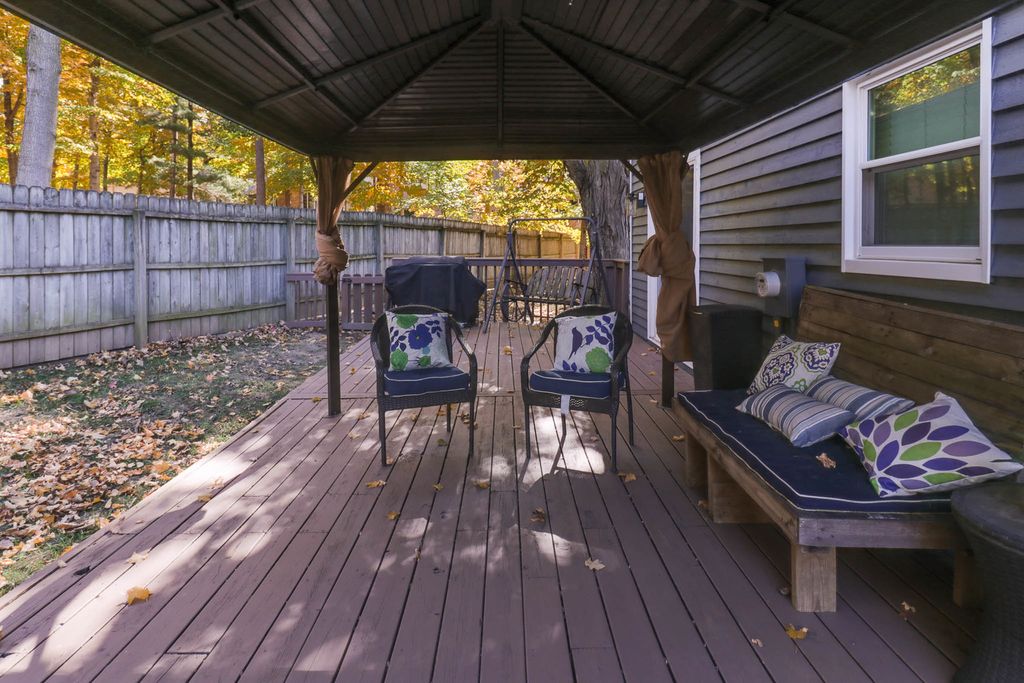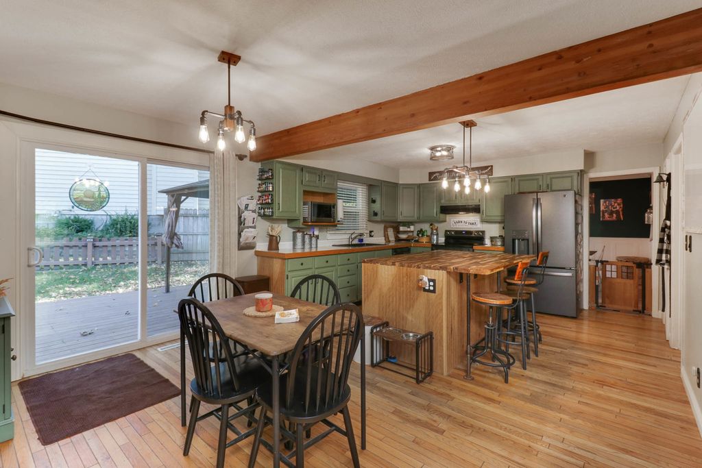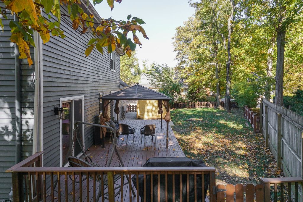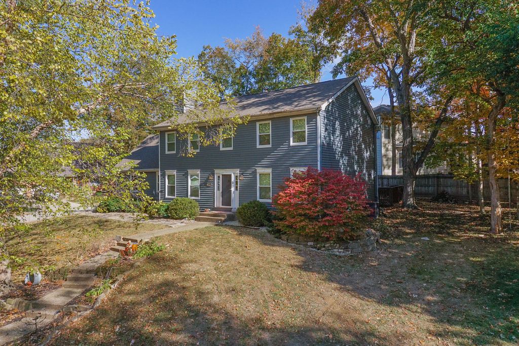 Beautiful 2-story placed regally on a raised corner lot in Woodland Ridge featuring 5 spacious bedrooms (all on the 2nd floor), 3.5 baths and updates galore! On the first floor find a large eat-in kitchen w/ new island cabinets and butcher block countertop (2023), all appliances updated (2023) with exception of refrigerator (2025). Opens to the sunken family room w/ wood burning fireplace and spacious living room and dining room. New flooring throughout those rooms. Hall half bath updated with new vanity, toilet and paint (2024). Laundry room reconfiguration and updates with the addition of pantry space and new washer/dryer (2024). Upstairs find FIVE spacious bedrooms, and two full baths. The primary bedroom has a vaulted ceiling, walk in closet & en suite bathroom! The 4 additional bedrooms have brand new LVP flooring (2025). Finished lower level includes huge family room, other room & full bath! Side load 2 car garage with additional storage! Additional patio cement poured (2020), pergola addition (2021). All New Windows (2025), New HVAC (2024), Water Heater (2023). Exterior painted (2024). Newer light fixtures throughout. Roof (2016). Must see! Fenced.