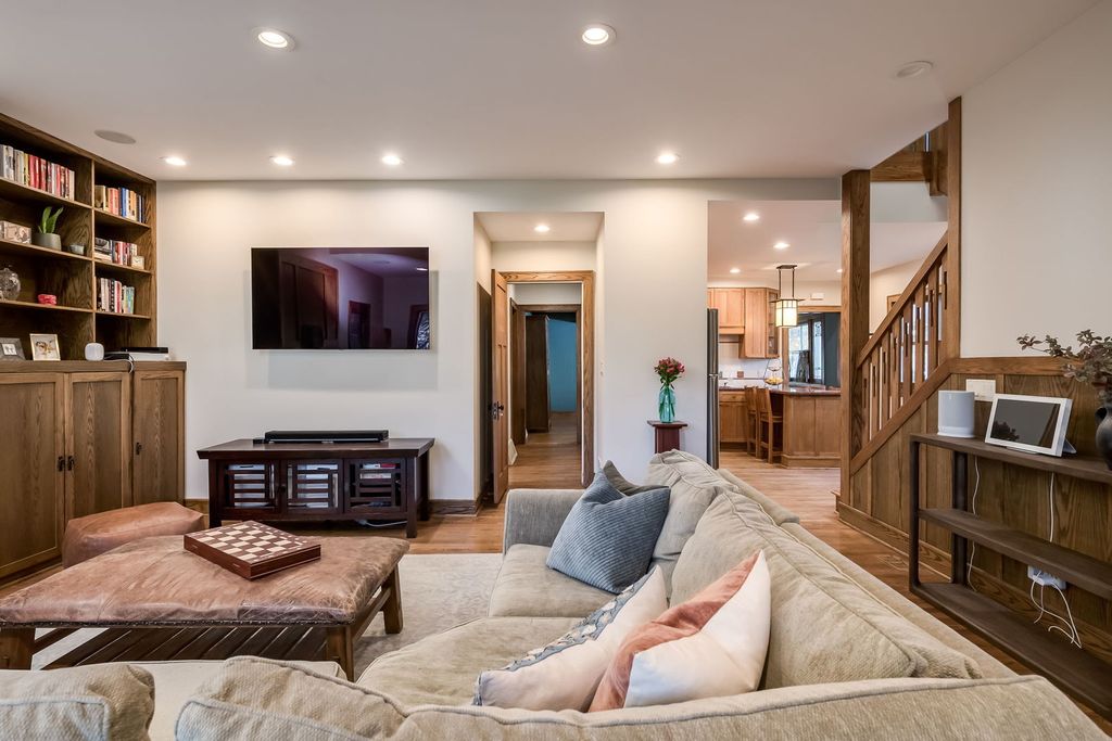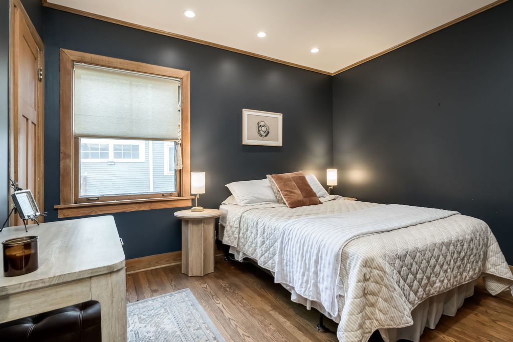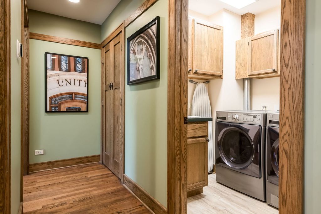 Impressive & inviting is this sprawling turnkey 5 BR/ 4BA Arts & Crafts gem. Rich, natural woodwork beckons from the moment you step inside this Prairie-Style treasure. Noteworthy are 3 finished levels of living coupled with a generous footprint. Flexible living space includes a full bath on each floor (in addition to a primary suite) and two 1st floor bedrooms. A circular floor plan makes for comfortable living and entertaining. Efficient kitchen has newer appliances and seating for 5 at peninsula. Well-designed family room comes with wood-burning fireplace and clever built-in cabinetry plus window-seat storage. The 2nd floor has three generous bedrooms (including primary), a full hall bath with dual sinks and convenient laundry room. Primary suite has private balcony, custom built-in cabinetry, and two walk-in closets. Basement was transformed and reconfigured in 2024 with a generous rec room, wet bar (wine fridge included), home office/ guest room, new full bathroom and an in-home sauna. Interior drain tile and sump pump installed. Two-car garage has an attached nicely finished space and perfect for a home office or other use. A mini split keeps it warm & cool, as needed. Great opportunity to move into a fabulous neighborhood. Less than 1 block from Mann Elementary (K-5). So many places to explore and enjoy in and surrounding Oak Park! Close proximity to Costco, Target, Trader Joe's, Jewel and so much more!