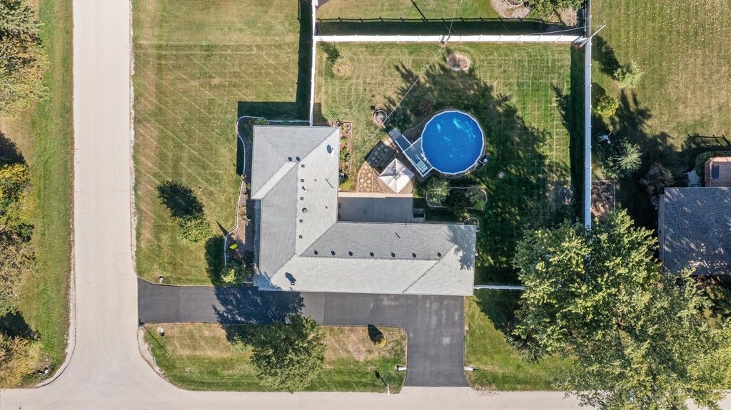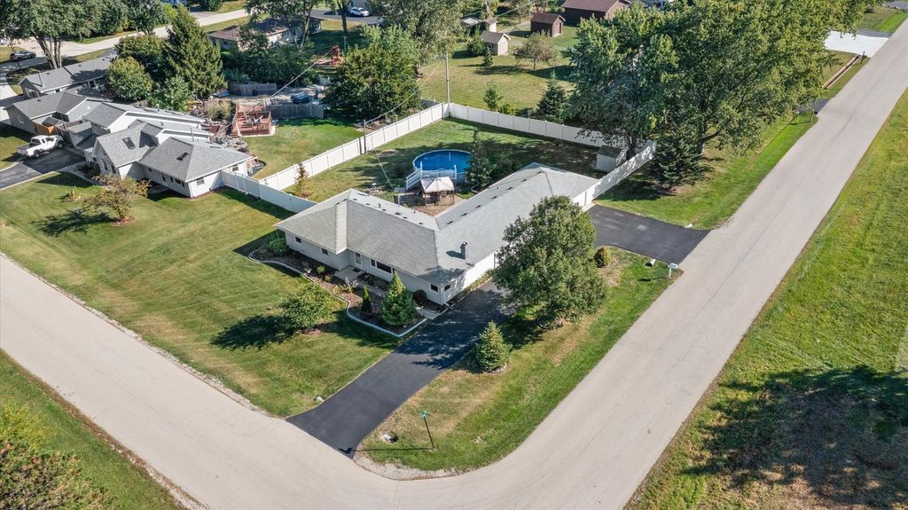 Welcome to your own private retreat just minutes from town. This stunning SINGLE-level 4-bedroom, 2-bath home offers effortless living with no stairs to climb and every space thoughtfully designed for accessibility and flow. Situated on an oversized corner lot, the fully fenced yard is an entertainer's dream: splash into the above-ground pool, host unforgettable gatherings on the expansive concrete patio, or unwind under the pergola-covered paver patio. All pool equipment and the shed stay, making this backyard ready for fun from day one. The oversized two-car garage connects to the home via a covered walkway, and the circle driveway adds even more parking for guests, toys, or extra vehicles. Inside, the massive master suite is a true sanctuary-complete with a private bath, direct access to the outdoors, and its own Space-Pak heating and cooling system for personalized comfort. Three additional bedrooms are located on the opposite side of the home, creating a peaceful separation perfect for everyone. The heart of the home features a light-filled kitchen, open dining area, cozy living room, and a welcoming family room with a wood-burning fireplace. Additional highlights include: Windows and air conditioning with a transferable warranty A well-maintained septic system with lift station alarm. Evident pride of ownership throughout. This home is truly move-in ready and offers the rare luxury of sprawling, RANCH-ideal for all ages and stages of life. Updates include new HVAC, siding & roof in 2020. Driveway was completely removed and replaced about 2 years ago along with the fence being installed. Carpet and most of the windows were replaced in the last 2 years. Come see it, fall in love, and start your next chapter in style.