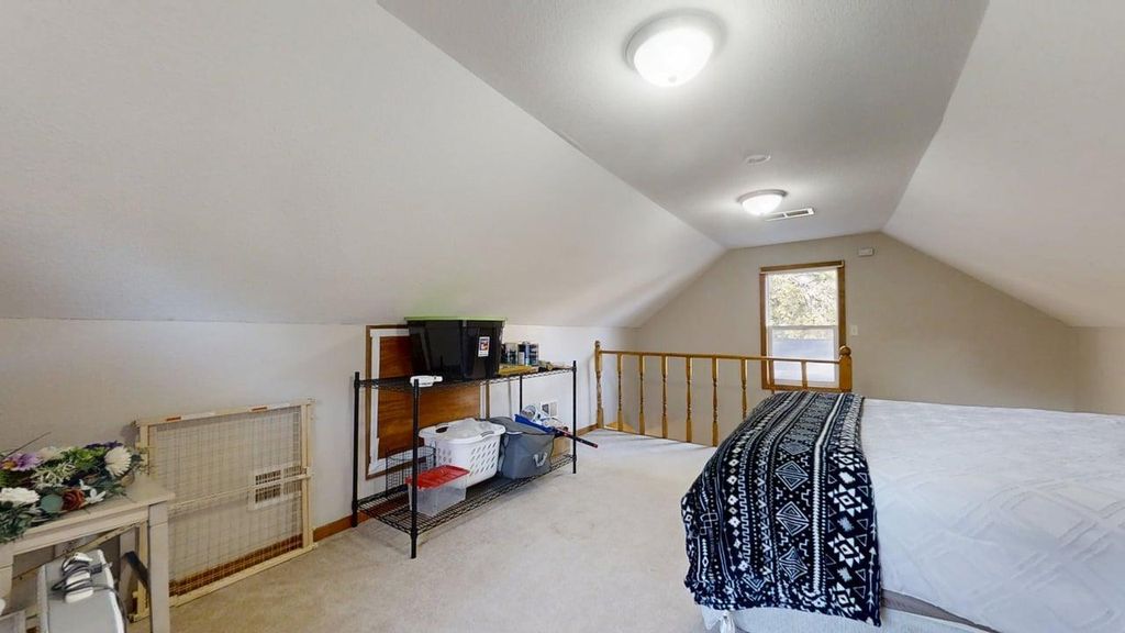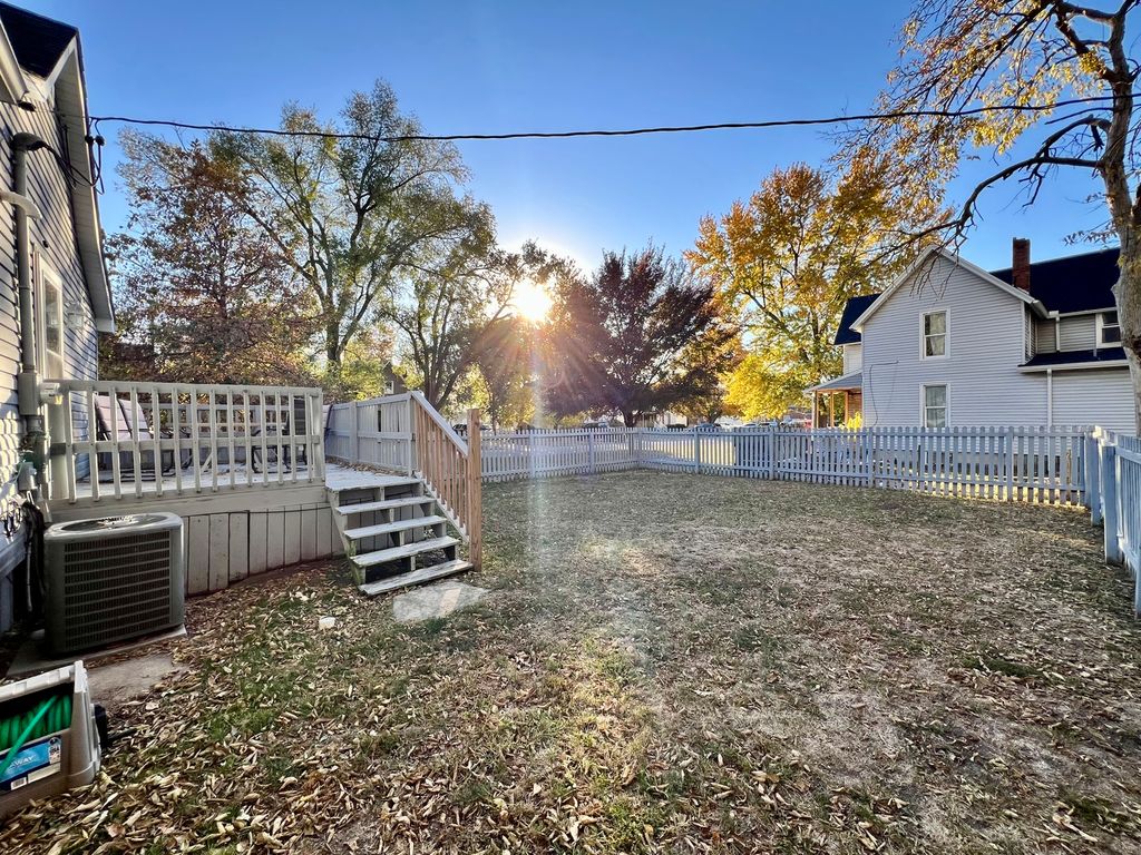 Don't miss this inviting home situated on a desirable corner lot! The spacious living room features a warm beamed ceiling and opens to an eat-in kitchen complete with a breakfast bar, perfect for casual dining and entertaining. A combined utility and laundry room provides extra storage and functionality. The main level bedroom is generously sized with a large closet area, while the upper level bedroom offers additional space and flexibility. Enjoy relaxing on the welcoming front porch or out back on the deck overlooking the fenced backyard. Additional highlights include a fantastic two-car detached garage and a convenient garden shed for extra storage or hobby space. Schedule your showing today!