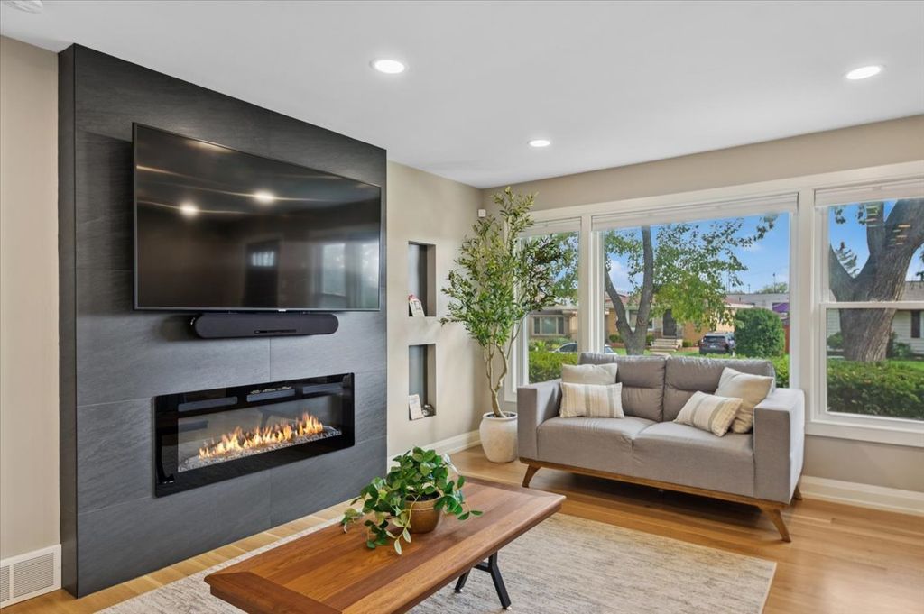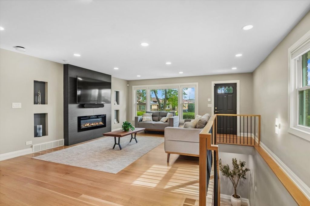 Unmatched quality in this fully renovated 4 bedroom, 3 bathroom home in a quiet part of Morton Grove. With 2,400+ sq.ft. of refined living space on two levels, everything has been modernized from the inside out and nothing has been overlooked: new windows, plumbing, electrical, LED lighting, re-insulated attic, spray-foam insulated lower-level, white oak hardwood floors, central vacuum, driveway, and so much more. Walk in and you're welcomed by a bright and open floorplan featuring cozy electric fireplace, spacious kitchen, and three generous bedrooms and two designer bathrooms on the main floor. Bathrooms feature radiant heated floors and quartz countertops, and an en-suite in the primary bedroom. The lower-level is accessed through the wide wrought-iron staircase to another fully-finished living space including a massive family room, second kitchen with eat-in peninsula, legal 4th bedroom with window-well egress, and full bathroom- perfect for an extended family situation. Large laundry room area with plenty of storage and sump pump/ejector pump with backup. The vast backyard space features a custom-built pergola covered patio area, lots of green space, and an extra-wide driveway area to park & maneuver several cars, with a 3-car garage and workshop/shed space. Mechanicals all replaced within the last 4-7 years. Within easy access to all the area shopping, dining, and amenities. ACT FAST.
