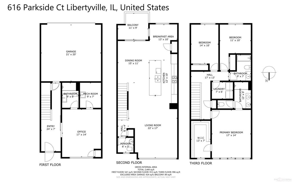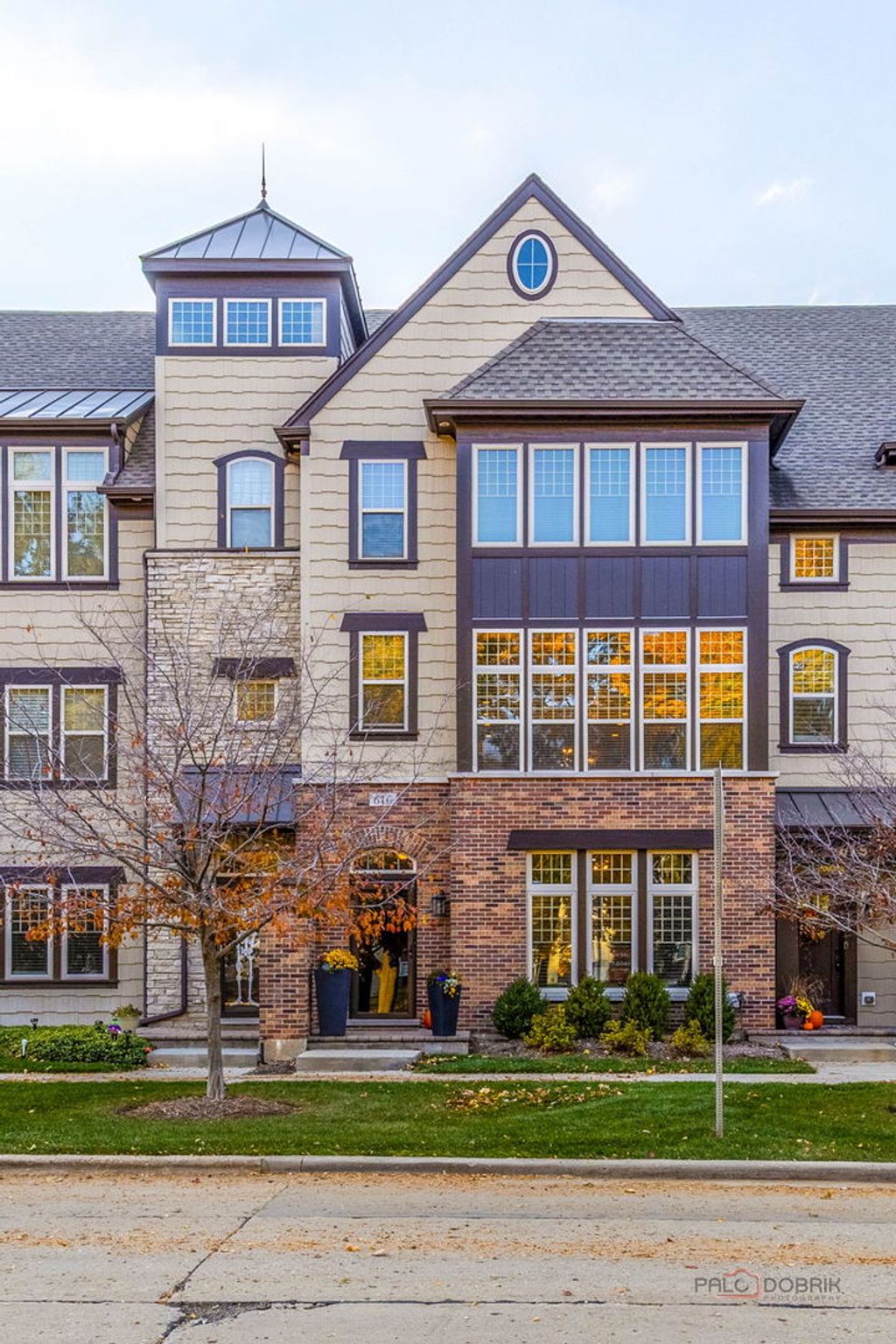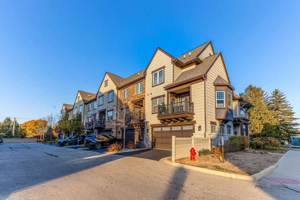 Welcome to the Superior Model at Parkside of Libertyville, the largest and most desirable floor plan offered in this sought-after community. This upscale, sun-filled 4-bedroom, 3.5-bath townhome offers over 2,550 square feet of thoughtfully designed living space across three levels. Built in 2017, this exceptional home blends modern elegance, luxurious finishes, and low-maintenance living with a low HOA in one of Libertyville's most walkable and charming neighborhoods. Perfectly situated in a premium location with front views overlooking the serene park. The entry level welcomes you and offers a spacious room, ideal as a fourth bedroom, home office, or playroom. This ground floor also includes a beautiful full bath and additional storage room with utility sink. The flooring in the large attached two-car garage has an apoxy finish for easy cleaning. The main living floor is bright and airy, featuring wide-open spaces, 9-foot ceilings, and gleaming hardwood floors throughout. A remarkable kitchen takes center stage with a grand quartz island, custom 42" cabinetry, designer tile backsplash, and top-of-the-line appliances including a Sub-Zero refrigerator, Wolf cooktop, Wolf built-in/drawer microwave, and Wolf double oven-a true chef's dream in this gourmet kitchen. The spacious great room, dining area, and sitting nook flow seamlessly, creating an inviting environment for both daily living and elegant entertaining. A private balcony extends the living space, offering the perfect spot to grill and relax. Upstairs, the luxurious primary suite features a large walk-in closet and a spa-inspired ensuite with a double-sink vanity, water closet, and oversized glass shower. Two additional bedrooms are generously sized, accompanied by a beautifully appointed full bath and a convenient upstairs laundry room. This home is impeccably maintained and has been recently repainted, reflecting true pride of ownership. Additional features include a Ring doorbell, built-in sprinkler system, and premium window treatments that add both style and functionality throughout. Offering maintenance-free living, sophisticated upgrades, and timeless design, this home is move-in ready. Located just a short stroll from downtown Libertyville, residents enjoy effortless access to local shops, fine dining, coffee houses, the Metra station, public library, and year-round community events. Libertyville is renowned for its scenic parks, trails, and top-rated schools, including National Blue Ribbon-recognized elementary schools and the highly acclaimed Libertyville High School. Experience the perfect blend of luxury, location, and lifestyle at Parkside of Libertyville.