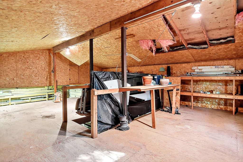 REMARKABLE 3 BEDS / 2.1 BATHS TWO-STORY HOME WITH ADDITIONAL OUTBUILDING! This property truly has it all - featuring an Oversized Living Room with a Wood-Burning Stove and Sliding Door leading to the expansive Wood Deck. The bright Eat-In Kitchen offers plenty of cabinetry and a comfortable Eating Area, while the Spacious Dining Room with Bay Window is perfect for entertaining. Enjoy the convenience of a First-Floor Bedroom and Full Bathroom. Also, an Open Loft/Office Space on the First Floor, On the Second Floor is a Huge Primary Bedroom, and another generously sized Bedroom, along with a Full Bathroom. The Full Basement includes Laundry and is currently set up as a Home Gym, Attached 2 Car Garage, Step outside to the large Wooden Deck overlooking the yard, a Detached Outbuilding/Garage with one 11-foot overhead door and two additional garage doors, plus a separate Shed for extra storage. Conveniently located near transportation, shopping, and more! Sold As-Is.