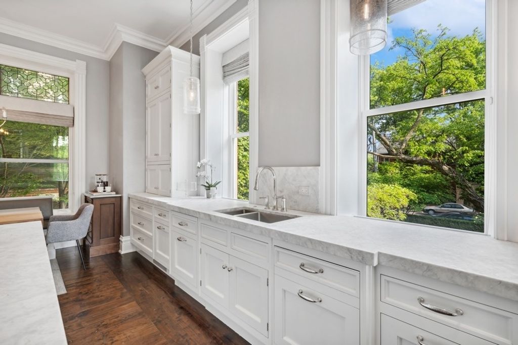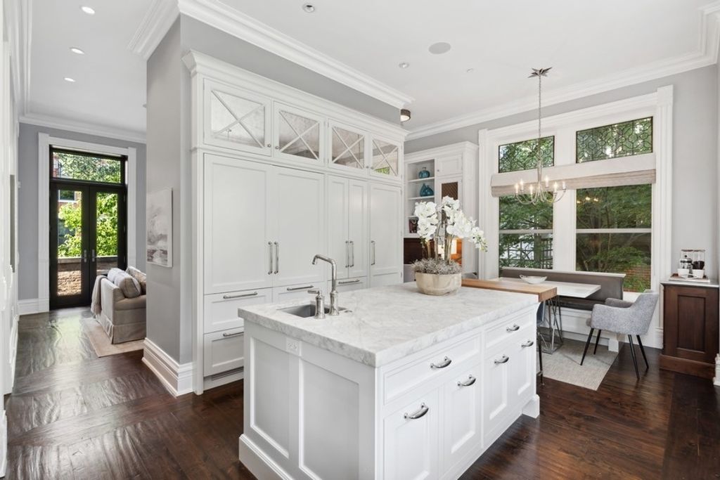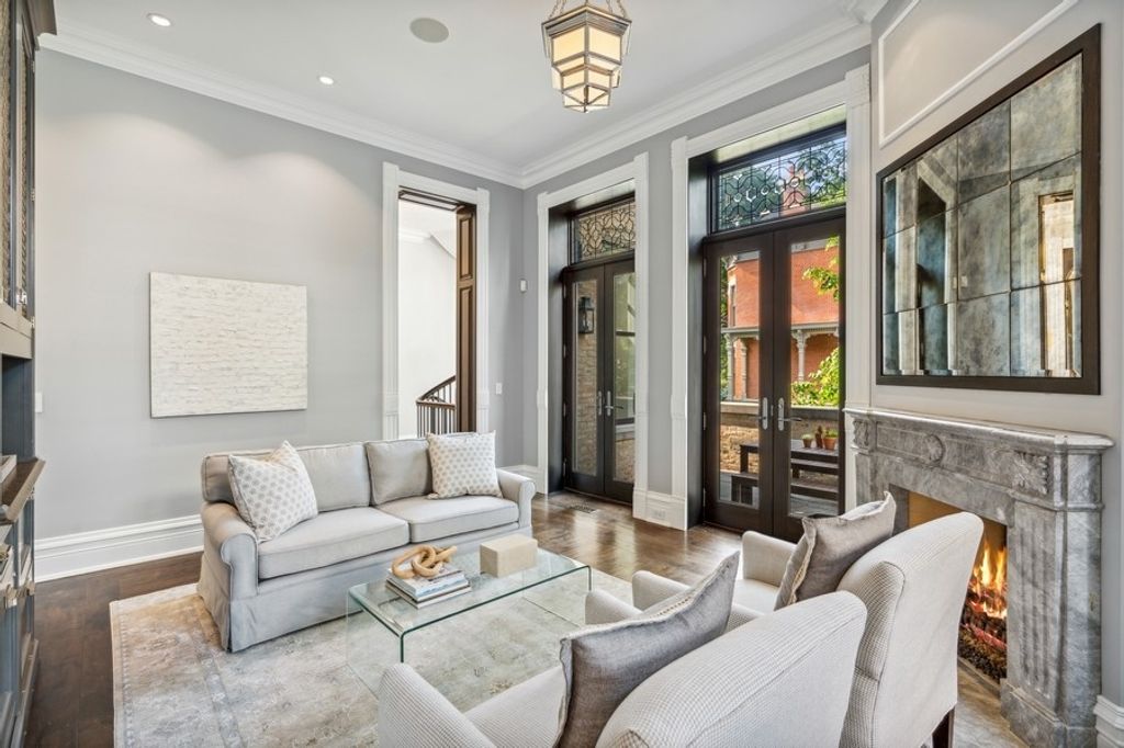 A sophisticated presence, landmark status, architectural integrity, and an unprecedented outdoor footprint for Wicker Park, 1407 N. Hoyne Ave. is a one-of-a-kind opportunity for the homeowner who wants an expansive city estate with pedigree and a modern program. Originally built for beer baron John H. Rapp in 1886, this 8250 SqFt-square-foot, 5+ bed/5.5 bath single-family home underwent a multi-year renovation and restoration by Rugo Raff Architects. Preserving elements of its Victorian charm while optimizing sightlines and integrating first-class finishes was paramount. This special home's unheard of 98' x 110' lot affords multiple green spaces, including a deep front yard with mature landscaping, a side yard with raised garden beds and a European-style pergola. Inside, an elegant entry plus an oval-shaped entry hall link to a lovely living room with an abundance of natural light, a traditional turret, and a wood-burning fireplace, and a formal dining room just beyond with hand-scraped walnut floors. The custom chef's kitchen stuns with O'Brien Harris cabinetry, white quartzite countertops, professional-grade Wolf/Sub-Zero appliances, an herb garden, a full butler's pantry, a breakfast dining space with banquette seating, and a built-in desk. The main level also features an intimate family room with built-in walnut cabinetry and a chic beverage center, and two beautiful limestone terraces accessed via French doors: a 12' x 23' west terrace for open-air entertaining and a 12' x 17' side terrace that's perfectly appointed for large-scale alfresco dining with an outdoor kitchen and a built-in grill. A striking example of this home's flawless interior architecture is the centrally located, curving suspended staircase. The second level is devoted to two secondary bedrooms (one with custom bunk beds), the first of two laundry rooms, and an impressively spacious primary suite with a sitting area, a custom dressing room, a walk-in closet, and a marble-clad ensuite bath with two vanities, a soaking tub, and a deluxe shower. The third floor presents two designer offices--a handsome den with knotty alder wood floors and a gas fireplace, a cozy den with a wet bar, an exercise room, and yet another polished guest bedroom. But there's more... This truly magnificent home also comes complete with a fully finished garden level with a massive playroom that opens onto a basement terrace, a wine room, a kitchenette, another large guest bedroom with den perfect for related living, a second laundry room, a walk-in storage room, and a custom mudroom that connects to an attached garage. Additional callout details and amenities include restored original doors and hardware, custom woodwork and trim throughout, designer lighting and wallcoverings throughout, four total fireplaces, 97 Marvin windows, geothermal heating and cooling plus radiant heat in the lower level playroom, a Lutron lighting system, self-irrigating planters on both terraces, and an excess of custom interior storage. Walking distance to Wicker Park proper and the world-class shopping and dining that extends from the neighborhood's famed Six Corners, 1407 N. Hoyne Ave. is a one-of-a-kind home with uncompromising design and comforts.