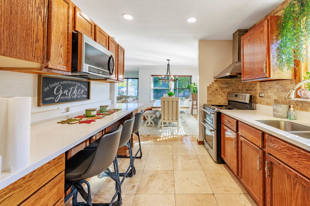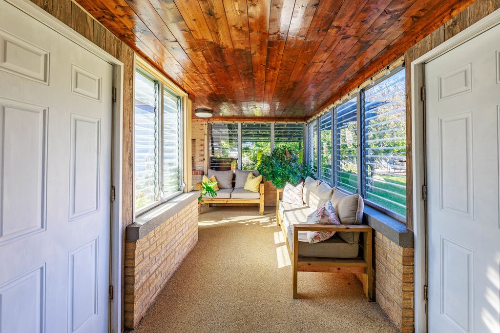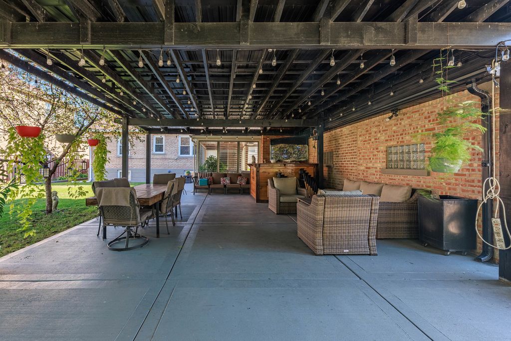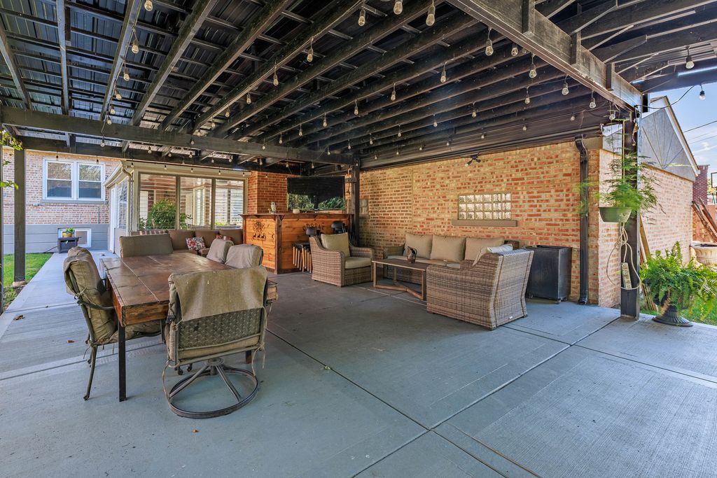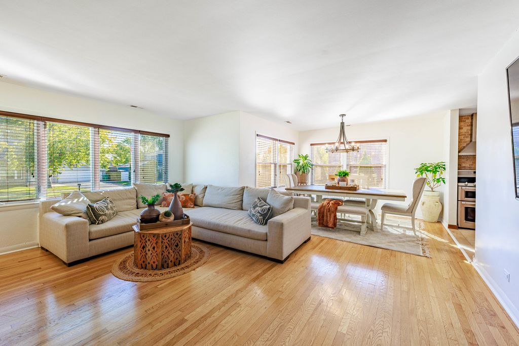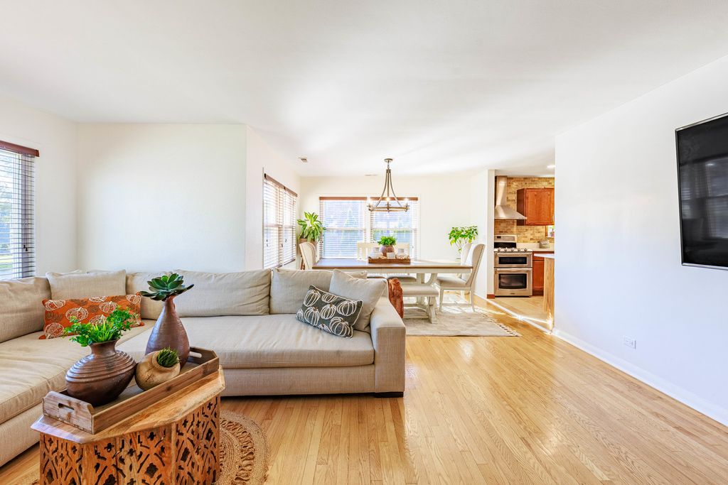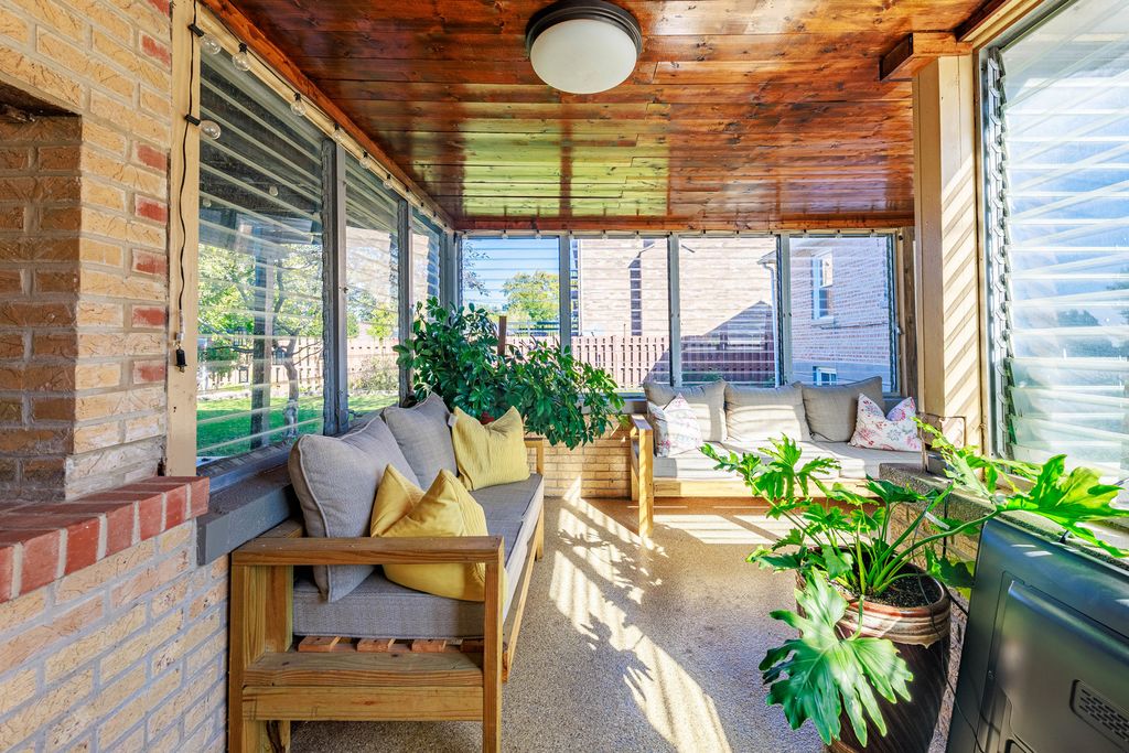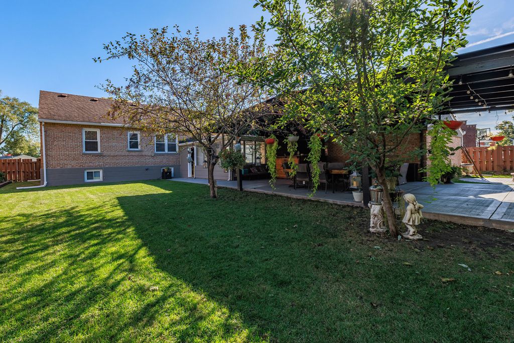 Welcome to this beautifully maintained 4-bedroom, 2-bath brick home sitting on a wide, professionally landscaped lot in a peaceful, tree-lined neighborhood. Natural light pours into the open-concept living/dining area, featuring gleaming hardwood floors, oversized windows, and a modern fireplace accent wall. The main level offers 3 spacious bedrooms and a full bath. The 4th bedroom is located in the finished lower level, offering privacy for guests, extended family, or a home office setup.The bright kitchen features warm wood cabinetry, stainless steel appliances, and seamless flow into the dining space. Head downstairs to find a generous recreation room, second kitchen setup, bedroom, full bath, and abundant storage. Love outdoor living? Step into your own backyard retreat featuring an enclosed sunroom and an expansive covered patio with lighting, perfect for year-round enjoyment. The lush fenced yard with mature landscaping offers room to relax, play, and entertain.