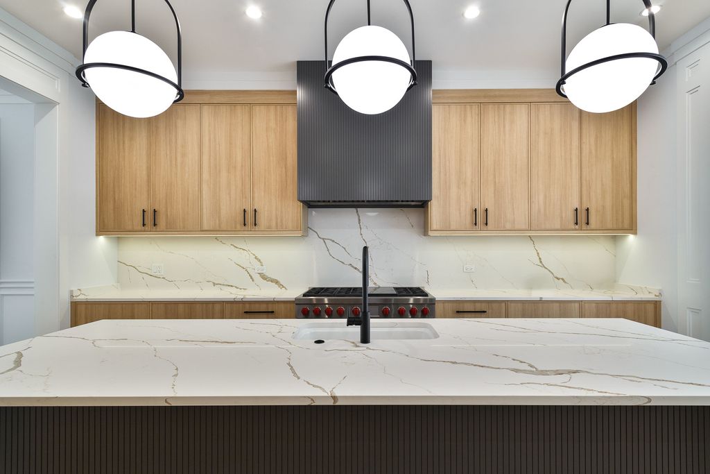 Exceptional 5 bed, 4.2 bath new construction single-family home in prime West Lakeview location. Great curb appeal with nice landscaping and brick paver walkway. Striking facade with Hardie lap + board and batten siding, limestone front steps, and modern black accents. Spacious floor plan with great consideration given to fixtures and finish materials. Combined living/dining room features floor-to-ceiling windows offering ample natural light, beautiful custom millwork, and fireplace. Chef quality kitchen equipped with professional grade Wolf/Sub-Zero appliances, large island with waterfall counter and bar seating, contemporary slim shaker cabinetry with under counter lighting, stunning quartz counters and backsplash, butler pantry with open shelving and glass uppers, and walk-in pantry. Adjoining family room highlighted by coffered ceilings features second fireplace flanked by custom built-ins, and large windows overlooking the backyard. Rear mudroom with built-in storage. Spacious primary bedroom includes tray ceiling and custom millwork, two walk-in closets with custom organizers, and spa like ensuite bath with freestanding soaking tub, frameless glass steam shower, vanity with dual sinks and quartz countertops, and heated flooring. Two additional bedrooms with ensuite baths, and laundry with washer/dryer complete the upper level. Finished basement with radiant heated flooring throughout includes recreation room with wet bar + beverage center, two guest bedrooms - one with ensuite full bath, half bath, storage, mechanicals, and second laundry with washer/dryer, storage, and sink. Statement lighting, 5 1/4" white oak flooring, designer fixtures and finishes, wood railings with metal balusters, built-out closets, and skylights. Enclosed backyard with brick paver patio. Detached two-car garage featuring roof deck with pergola, 2 electric car charging plugs, and drywalled interior. Awesome location, steps to all that Lakeview has to offer! Easy access to all your favorite spots for food, entertainment and shopping. Conveniently located by parks and public transportation.