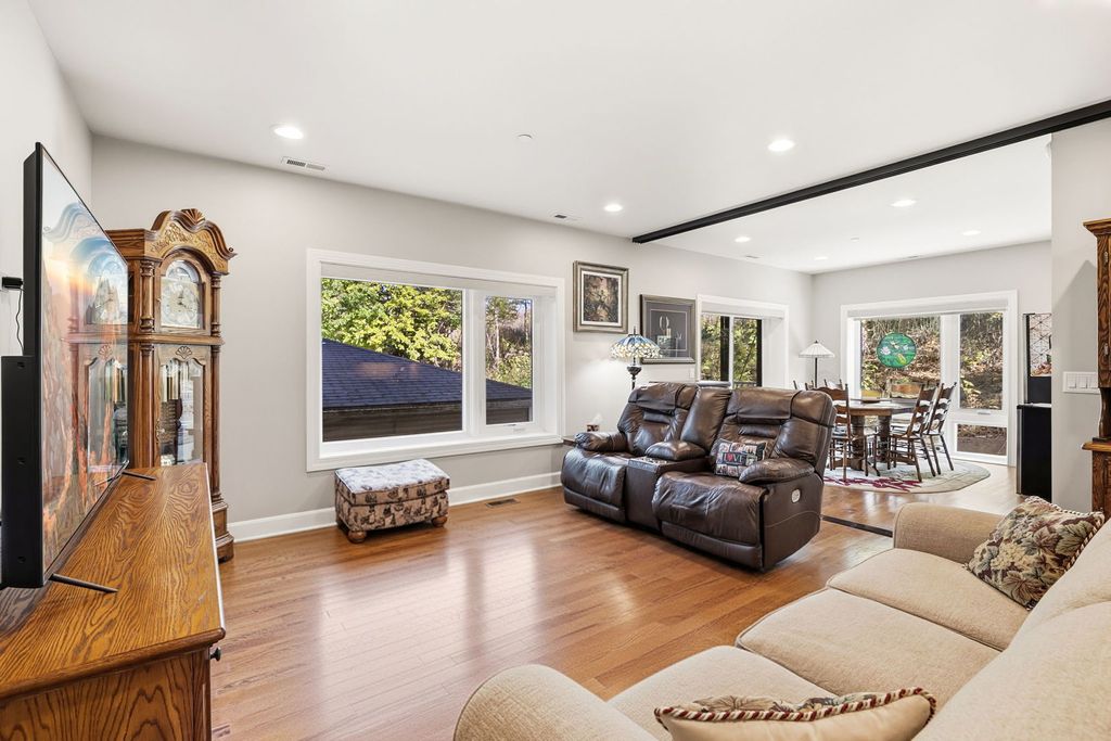Fantastic corner unit offering 2 bedrooms plus den (or optional Dining room or 3rd bedroom) and 2 full baths with luxurious finishes and a highly versatile floor plan. Features include rich hardwood floors, a stunning open island kitchen with dark cabinetry, stainless steel appliances, and granite countertops. The lavish primary suite boasts premium carpeting, a beautiful bath, and a spacious walk-in closet. All closets are professionally organized with Elfa shelving systems. Enjoy the convenience of in-unit laundry, a private balcony, and 2 garage parking spaces included. Elevator building in a prime Evanston location, just steps from Main Street shops, dining, and the El train. 2020 - new building roof 2024 - new Hardi-Plank cement siding, on south and west side of building. 2024 - New exterior paint north and east side of building 2019 - Guest bedroom windows and sliding glass door replacement. 2020 Family room, Dining room, master bedroom windows replaced. 2020 both bathroom counter tops replaced. 2019 all faucets replaced. 2023 AC/Furnace replaced. 2020 Water Heater.