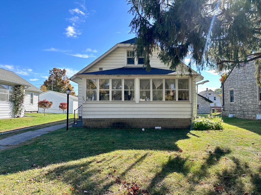 Three bedroom, one bathroom, 1.5 story home in nice location. This home has two main floor bedrooms, dining room and living room with hardwood floors. Full basement and a two car detached garage with alley access.