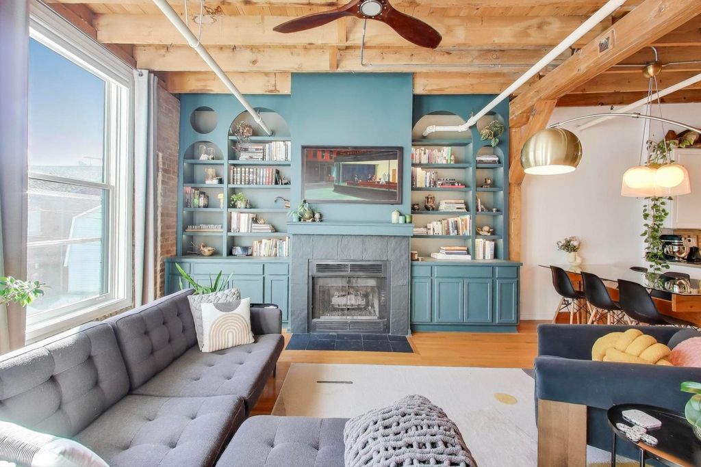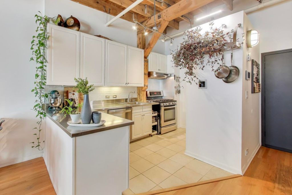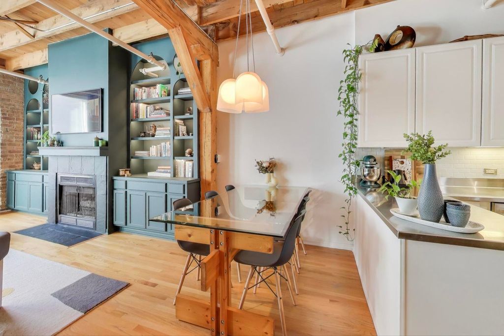 Rare Andersonville Loft in the Historic Map Factory -a truly distinctive duplex loft in one of Andersonville's most storied industrial buildings. This spacious one-bedroom plus office combines historic character with modern comfort. The dramatic upper level features an expansive open floor plan, ideal for entertaining, with soaring 12-foot timber ceilings, exposed brick, hardwood floors, and a wood-burning fireplace that anchors the space. The kitchen's stainless-steel finishes and generous layout make it equally suited for quiet nights in or lively gatherings. Downstairs, the private level creates a serene retreat with a spacious bedroom, dedicated office area, and warm architectural details that make the space both functional and inspiring. Enjoy a beautifully maintained common roof deck with a gas grill-perfect for relaxing or entertaining. The building also features laundry facilities and a voice intercom security system for peace of mind. Located just steps from Andersonville's vibrant shops, cafes, and restaurants, this rare residence offers an ideal blend of urban style and neighborhood charm. Experience one of Chicago's most walkable and welcoming communities from a home that's as unique as its setting.