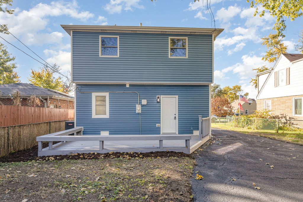Welcome home to this charming and beautifully updated Cape Cod featuring 4 bedrooms and 3 full baths. The renovated kitchen boasts new cabinetry, sleek quartz countertops, ss appliances, a custom tiled backsplash, and durable LVP flooring that flows seamlessly throughout the main level. Enjoy easy access to the large private deck and spacious yard that's perfect for relaxing or entertaining. The open concept living and dining area shines with extensive recessed lighting and a striking feature wall, creating a warm and inviting space. The main level primary bedroom offers a stunning ensuite bath, while a second renovated full bath and convenient main-level laundry add extra flexibility. Upstairs, you'll find three additional bedrooms and another remodeled full bath. A detached two car garage provides ample parking and additional storage. With all new flooring, lighting, and paint, plus a newer roof, HVAC, and hot water heater, this home offers years of maintenance-free living for peace of mind. Nestled in a quiet residential area yet close to restaurants, shopping, parks, and only a few blocks to the Metra and I294 making for a quick commute.