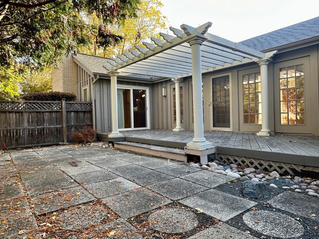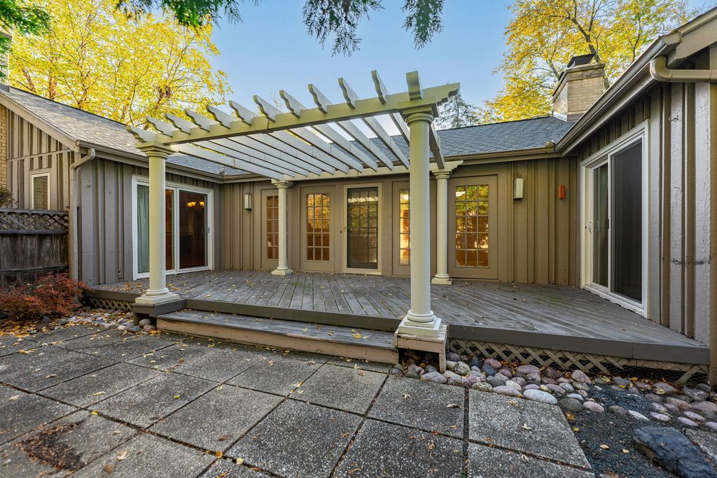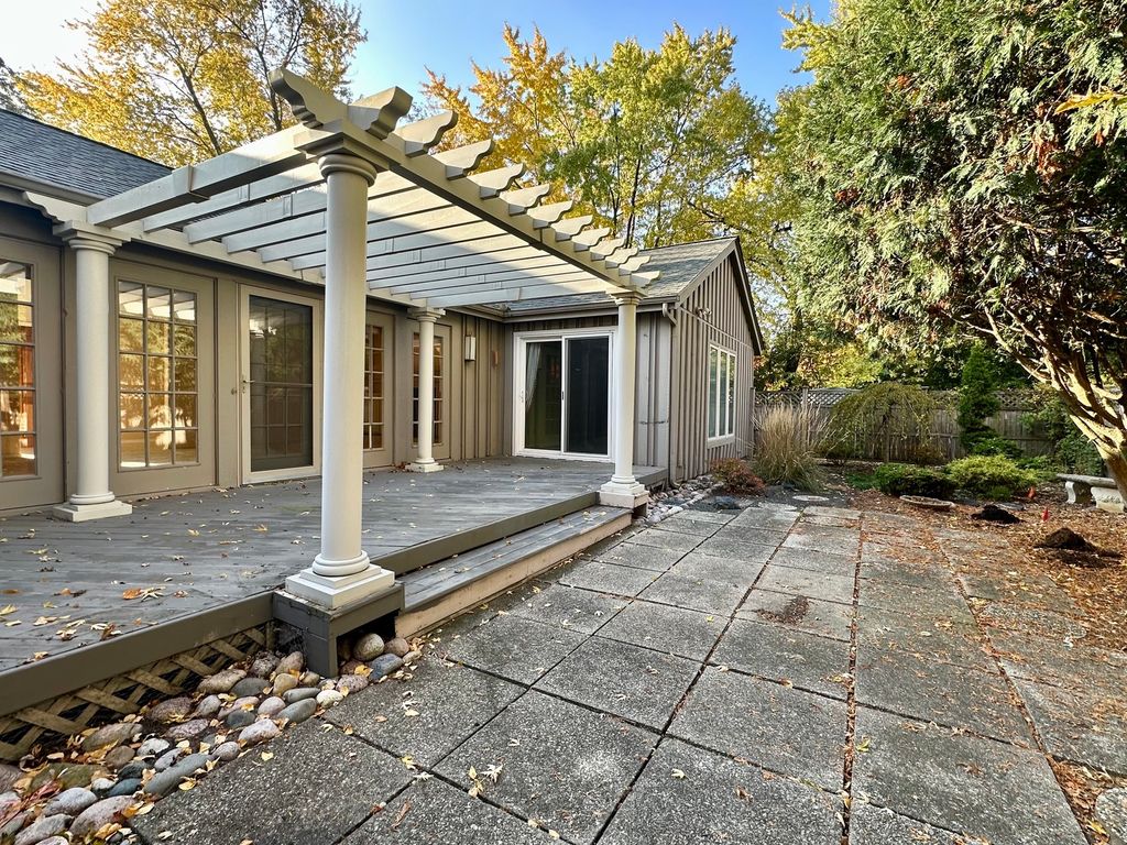 This charming ranch home offers a perfect blend of comfort, space and location. With approximately 2,300 square feet of living area on nearly half an acre, it features an open layout enhanced by vaulted ceilings. Enjoy cozy fireplaces in both the living room and family room and a beautifully updated kitchen with granite countertops, stainless appliances, pantry and hardwood flooring. The primary suite, living room and family room each open onto a spacious deck with a pergola, plus a patio and a private, fenced garden area-ideal for relaxing or entertaining. The home has a two car side load garage. For peace of mind the roof is less than five years old. The association includes a private pool, playground and tennis/pickleball courts. Conveniently located just three blocks from Lundahl Middle School, near Crystal Lake Country Club and easy access to local bike trails, this home combines comfort, style, and convenience in one inviting package.