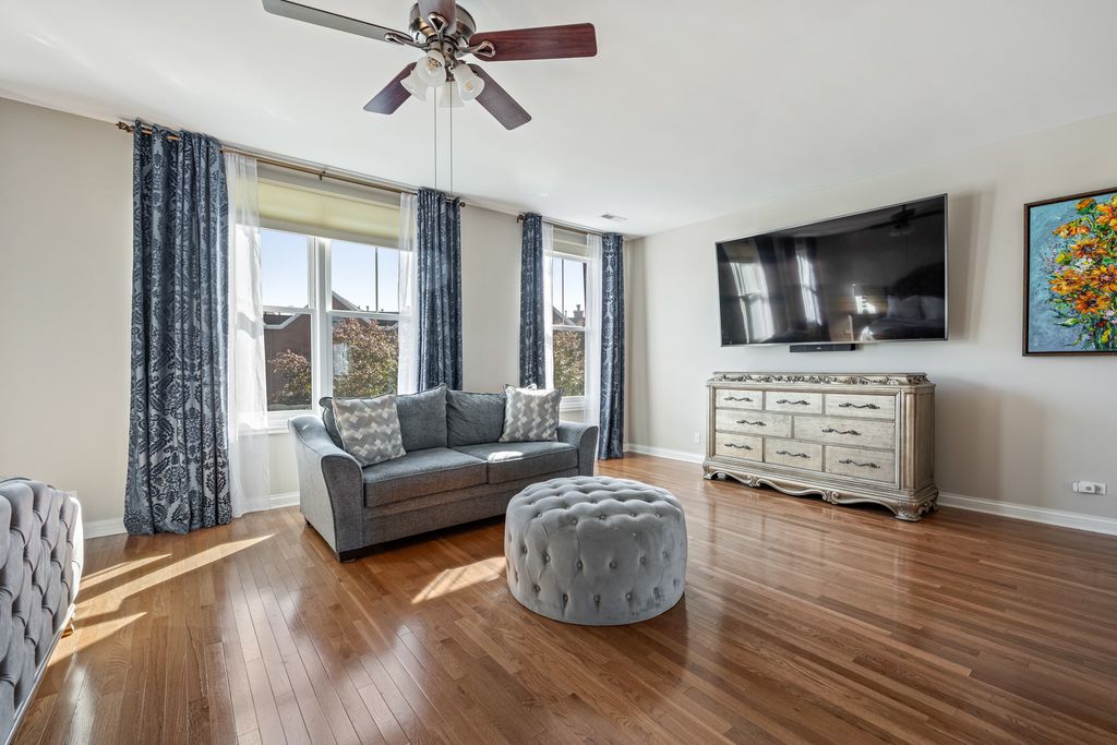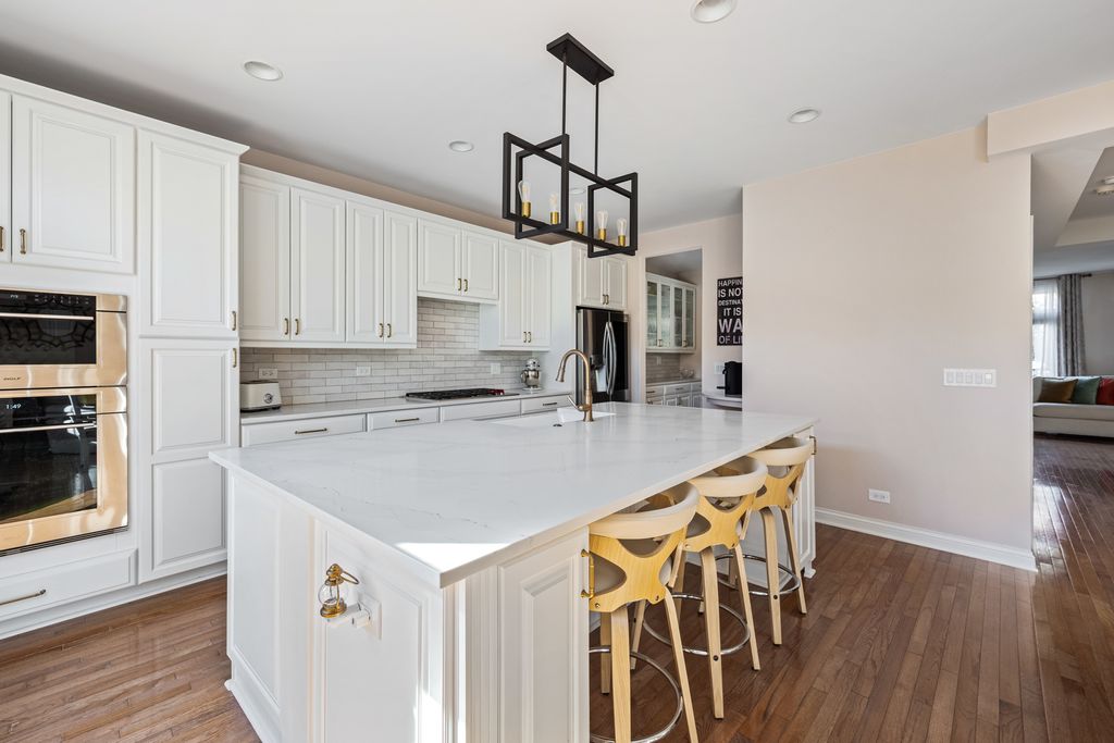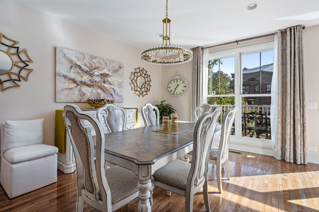 This exquisitely renovated Tower Crossing townhome in the heart of The Glen has been transformed with elegant updates and designer finishes throughout 3,840 square feet of refined living space. The largest Blackstone model in the premiere courtyard location offers four levels of luxury, with stunning all-white gourmet Kitchen renovated in 2020 with custom cabinetry, beadboard island, Wolf 5-burner cooktop, Bosch dishwasher, LG refrigerator and white gourmet Butler's Pantry ideal for entertaining. The serene Primary Suite showcases a spa-quality bath with double step-in shower with dual sprays and new glass enclosure, along with custom walk-in closets. Beautiful hardwood floors, custom plantation shutters and stylish fireplace enhance the elegant main living areas, while the outdoor patio and private balcony overlook a beautifully landscaped courtyard. Additional highlights include epoxy garage floor, gas line for outdoor grilling, Nest door-ring, dual-zoned HVAC and new water heater (2023). Perfectly positioned just steps from Glen Town Center shops, dining, Metra, tennis, golf, pickleball and rec center in Glenview's award-winning school district, this residence embodies an amazing lifestyle and sophisticated living at its best.