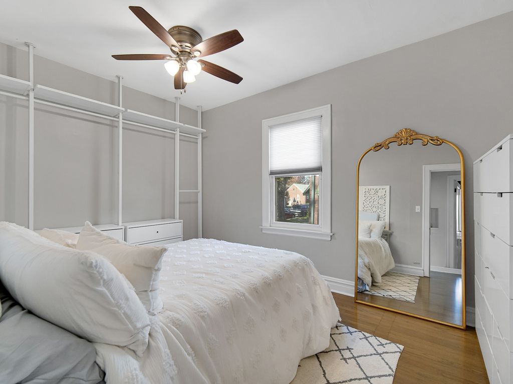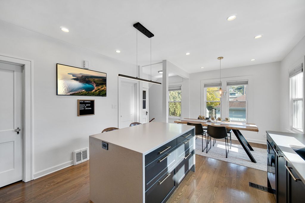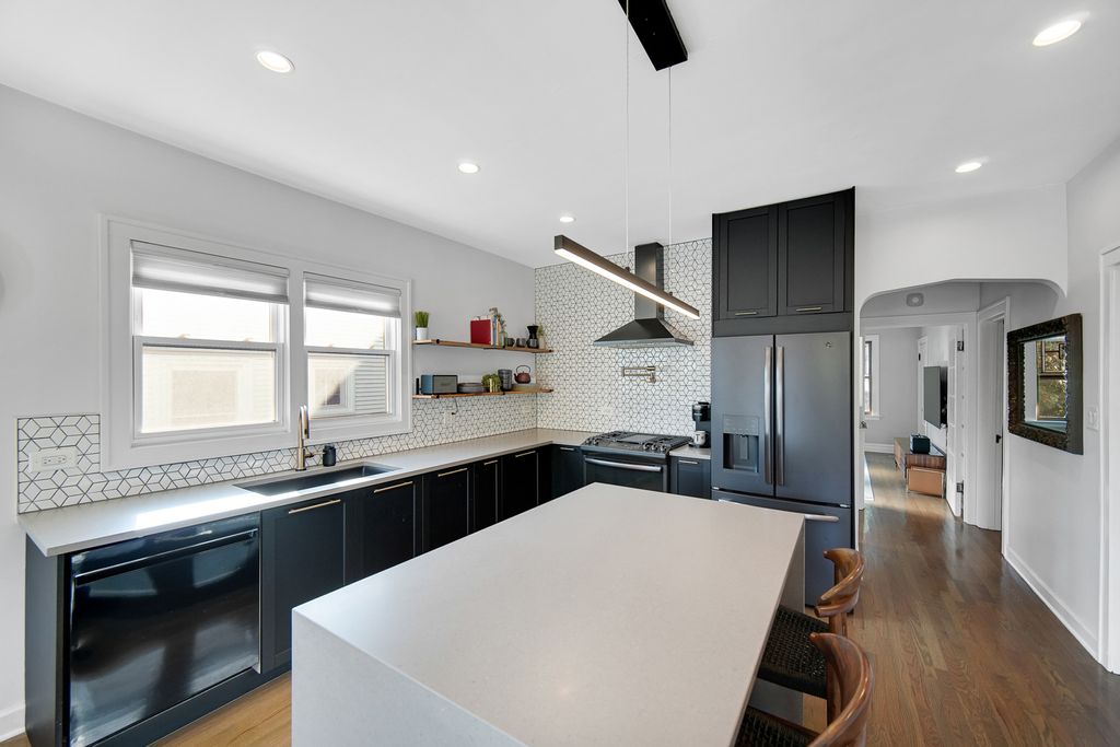 Step into this beautifully restored Brookfield bungalow where timeless character meets modern comfort. Every detail has been thoughtfully designed. From the refinished hardwood floors and five original stained-glass windows to the fully finished lower level that doubles your living space. The inviting eat-in kitchen blends vintage warmth with contemporary upgrades, featuring graphite black GE appliances, a striking waterfall island, custom tile backsplash, Delta Contemporary pot filler, high-end Delta fixtures, and the home's original built-in pantry. The updated bathroom offers a deep soaking tub, original hex-tile flooring, and elegant Delta fixtures. The lower level has been fully finished, adding a spacious family room. Additional updates include new Climate Guard windows with custom Levolor shades. Just a short walk to the Metra and downtown Brookfield, and located within the award-winning Lyons Township High School district. This is the perfect blend of vintage charm and modern living in one of Brookfield's most sought-after locations.