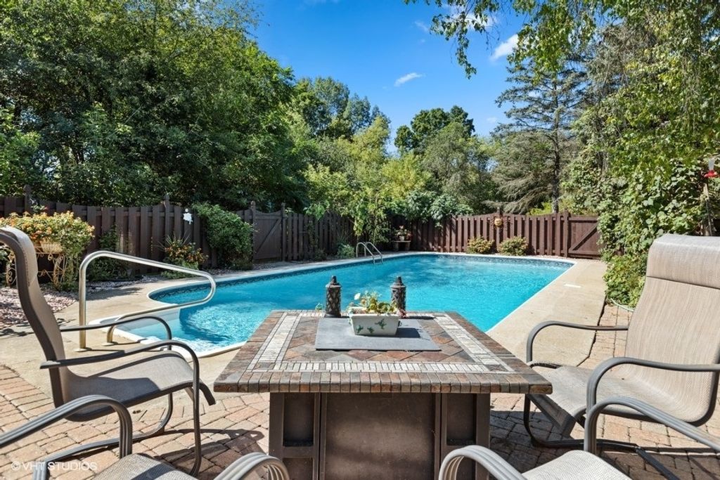 Your Own Private Oasis Awaits! Nestled on nearly an acre, this exceptional home offers resort-style living with a sparkling in-ground swimming pool and an impressive 20' x 20' cabana-perfect for outdoor entertaining. Inside, hardwood floors flow throughout the main and second levels, while vaulted ceilings in the living room, dining room, kitchen, and primary suite create an open, airy feel. The living room features a wood-burning fireplace, skylight, and sliders leading to the deck. The spacious dining room is filled with natural light from multiple windows.The chef's kitchen is a true highlight, featuring granite countertops, stainless steel appliances, a Viking gas range with custom hood, double ovens, a large island, and a wine cooler. Retreat to the expansive primary suite with a gas fireplace, walk-in closet, spa-like bath, and double doors opening to a wraparound Juliet balcony. The lower level offers a cozy family room with a custom bar and gas fireplace, plus a versatile third bedroom currently used as an office. Outdoor Living at Its Best. The backyard is designed for relaxation and fun, with a meticulously maintained pool (newer liner and heater with 15-year life) featuring a unique 36' x 18' design-deeper in the middle and shallow on the ends, ideal for pool volleyball. The stunning hexagon cabana, complete with a ceiling fan and screened windows, provides the perfect setting for gatherings year-round. Additional features include lush landscaping, furnace, hot water tank and pool liner all (2021), well pump (2023) and 200-amp electrical service (2014).