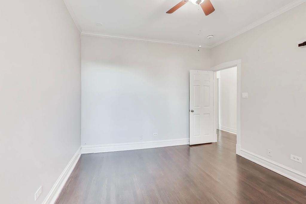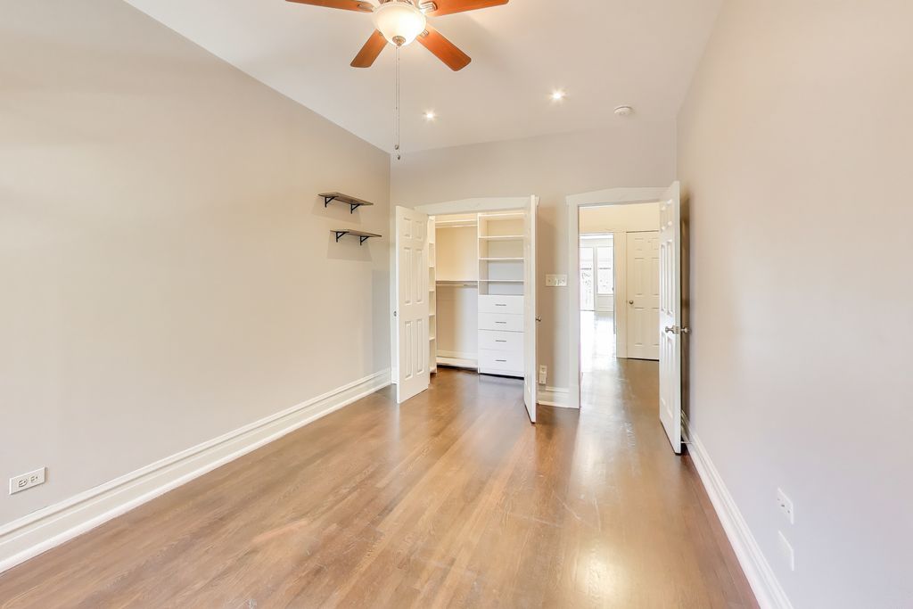 Southport Corridor/Graceland West / Top Floor / 2 Bedroom / +Den / +Office on a beautiful tree-lined street. Flooded with light, this home features hardwood floors throughout, new central AC & heat (2024), new side-by-side washer & dryer (2024), updated kitchen (2019), custom closets (2024), dishwasher (2024) and many additional upgrades. The large living room and den are linked to the dining room and kitchen, ideal for entertaining. The spacious bedrooms, with ample closet space, are separated by the central hallway. The expansive back deck, accessible from both the dining area and the mudroom, offers abundant natural light and impressive views of downtown. This home is walkable to Southport and Wrigleyville, brown and red line trains and so much more. Additional storage and bike room in the lower level.