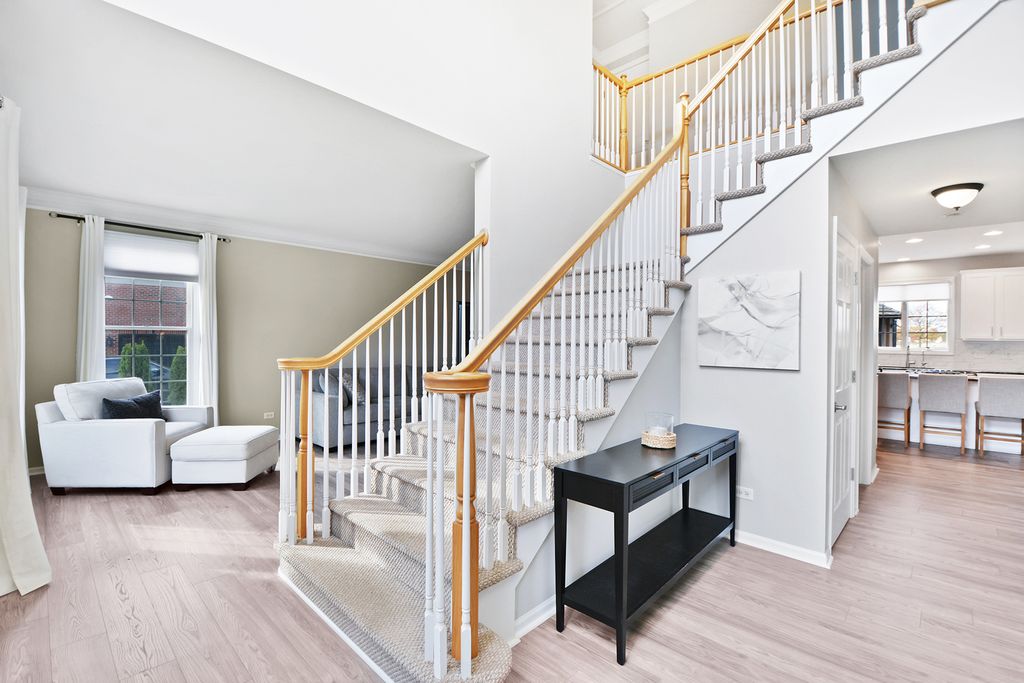 An elegantly updated two-story residence in the prestigious gated community of Hawthorn Woods Country Club overlooking the renowned Arnold Palmer golf course. This 2,904 square foot home offers a refined blend of elegance, comfort, and modern sophistication. Step inside to a bright and inviting interior where natural light fills every room, accentuating the new luxury vinyl plank flooring throughout the main level and plush new carpeting in the family room. The updated kitchen and bathrooms showcase timeless design with contemporary finishes, creating the perfect balance of style and functionality. Featuring three spacious bedrooms, two and a half bathrooms, and a versatile main-floor office or flex space ideal for today's lifestyles. A full basement offers abundant storage and potential for future customization. Enjoy serene outdoor living on the new deck and in the charming three-season gazebo with panoramic views of the fifth hole of the Arnold Palmer course. This home also features a residential solar energy lease that can be transferred to the new owner or negotiable. Don't be intimidated by solar power. The owner states that these bring big savings on the electric bill. Most months the electric bill is zero, when previously it was approximately $300 per month. This is currently based on charging 2 electric cars from the EV charger in the garage. Recent updates include a new sump pump and ejector in 2025, a newer roof, water heater, furnace, central air and washer/dryer. The home is also equipped with CAT5 wiring and an EV charger in the attached two-car garage. Residents enjoy access to exclusive amenities including the championship golf course, swimming pool, tennis and paddle courts, and the brand-new pickleball facility, all within a secure and beautifully maintained community. This move-in ready home exemplifies luxury living in Hawthorn Woods Country Club.