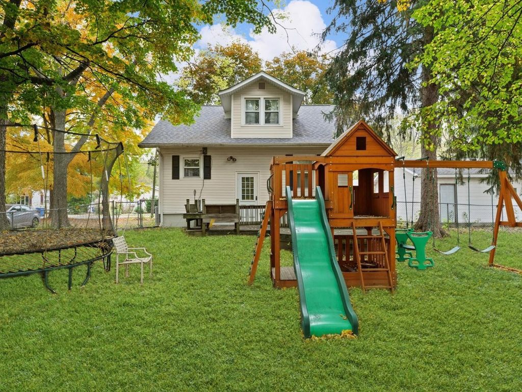 Charming bungalow filled with character and warmth! This inviting home offers 2 bedrooms and a full bath on the main floor plus a spacious primary bedroom upstairs for added privacy. Beautiful hardwood floors flow throughout, complimenting the classic style of the home. Enjoy your morning coffee on the enclosed front porch or relax outdoors on the large deck overlooking a fenced yard with mature trees. The oversized 2 1/2 car garage provides plenty of space for vehicles, storage or hobbies. A wonderful blend of comfort, charm, and convenience all ready for you to call home.