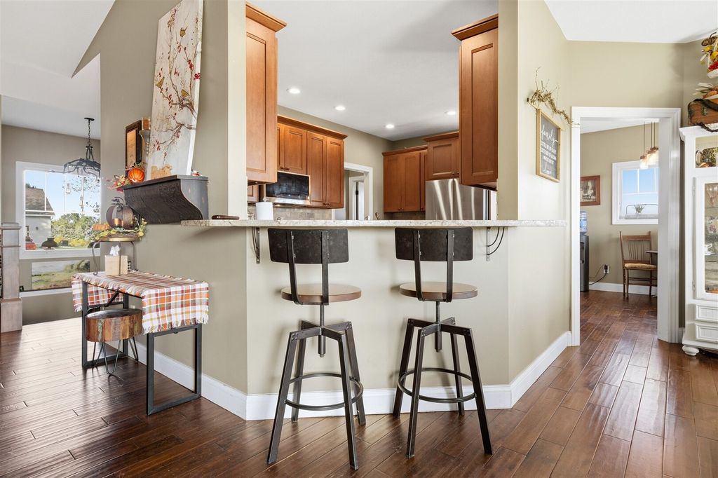 Situated on a beautifully sloping lot overlooking a peaceful valley in Whitetail South, this custom-designed walkout 4 Bedroom, 3 Full Bath Ranch offers the perfect blend of elegance, comfort, and function. The open-concept layout features a gourmet kitchen (appliances only 6 months old) with premium finishes and plenty of space for entertaining, flowing seamlessly into the bright and inviting living areas. The finished walkout basement expands your living space with room for recreation, 2 additional beds, a home office, all with access to the scenic backyard. A three-car garage provides ample parking and storage, complemented by an additional 10x14 detached storage shed with loft for tools or hobbies. The home has high efficiency 6" exterior walls and extra insulation throughout, main floor master has travertine shower with low curb access. Enjoy the serenity of the natural landscape from every angle - this property truly combines luxury living with breathtaking views overlooking the tree lined valley and is located only 6 minutes from Bloomington!