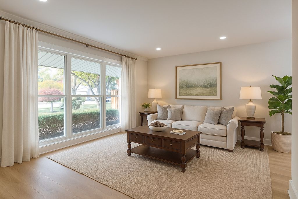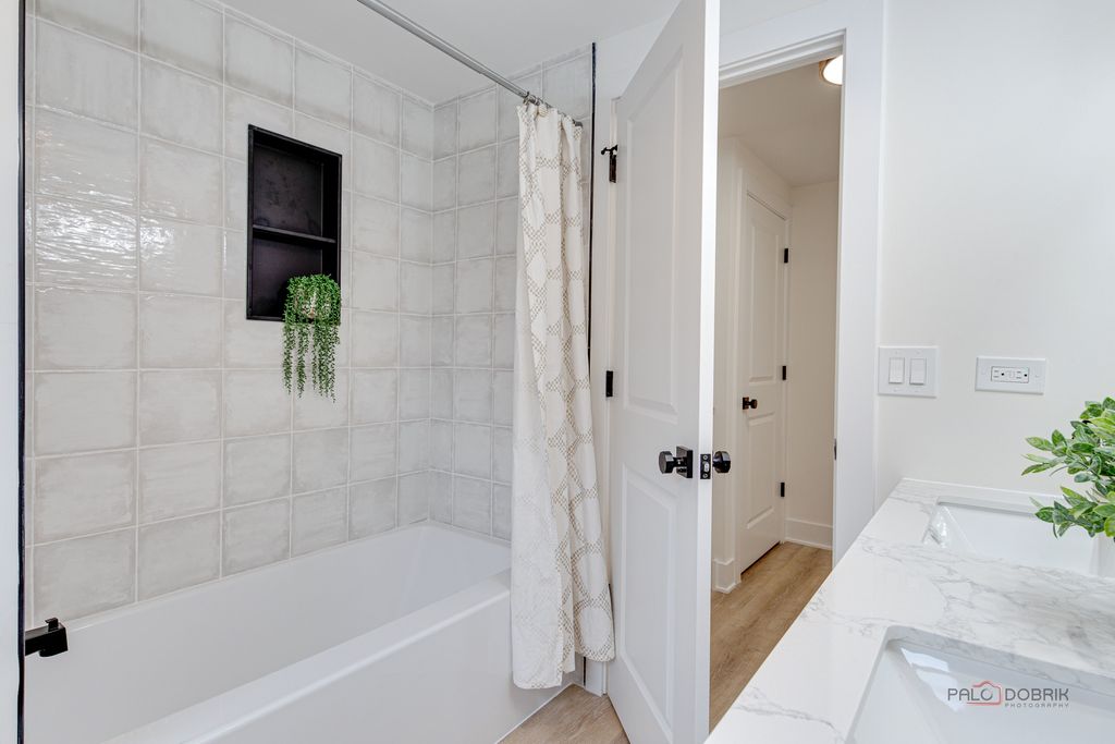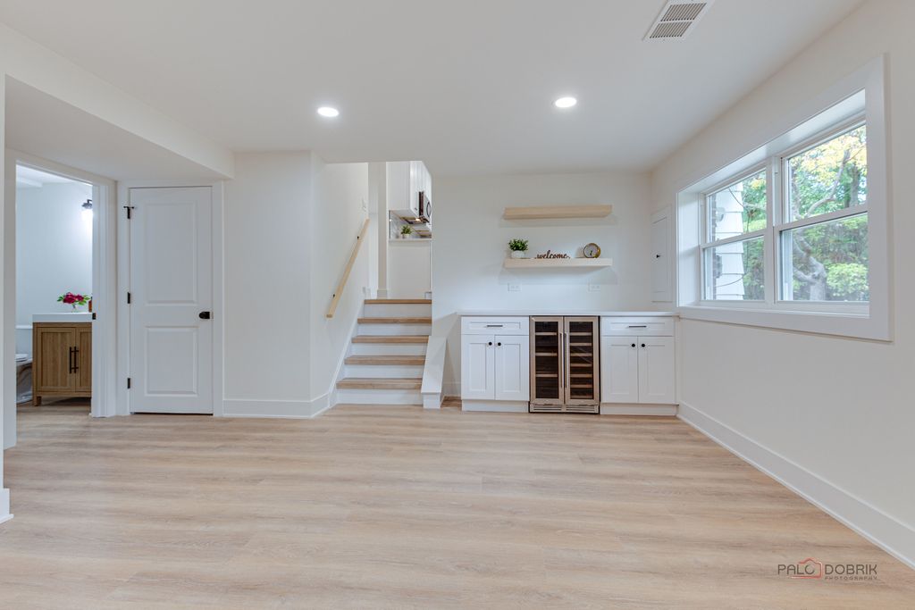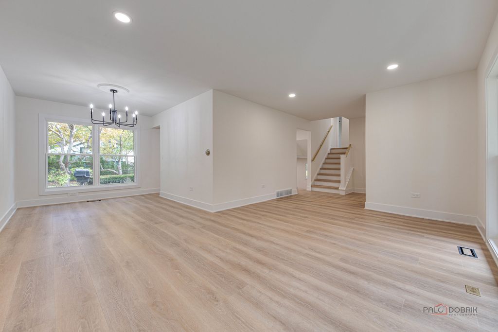 Welcome to this beautifully updated home in the sought-after Northgate Subdivision. Truly move-in ready! Step inside to find new luxury vinyl plank flooring, fresh recessed lighting, and a light-filled kitchen featuring 42" shaker cabinets, quartz countertops, and brand-new stainless steel appliances. The spacious 24' x 18' family room is the heart of the home, showcasing a brick fireplace with white millwork, a dry bar with beverage fridge, abundant recessed lighting, and a wall of windows that fills the room with natural sunlight. The living/dining room combo offers an ideal setting for holiday gatherings with its dramatic floor-to-ceiling windows. Upstairs, the updated hall bath features a double vanity, framed mirrors, and a stylish stone-tile tub/shower surround. The fully fenced yard is perfect for entertaining, kids, pets, or simply relaxing in your private outdoor oasis complete with mature landscaping for privacy and charm. Additional highlights include newer roof, windows, and HVAC for peace of mind. Located in highly rated District 21/214 schools. Too many updates to list. Come see this gorgeous home for yourself!