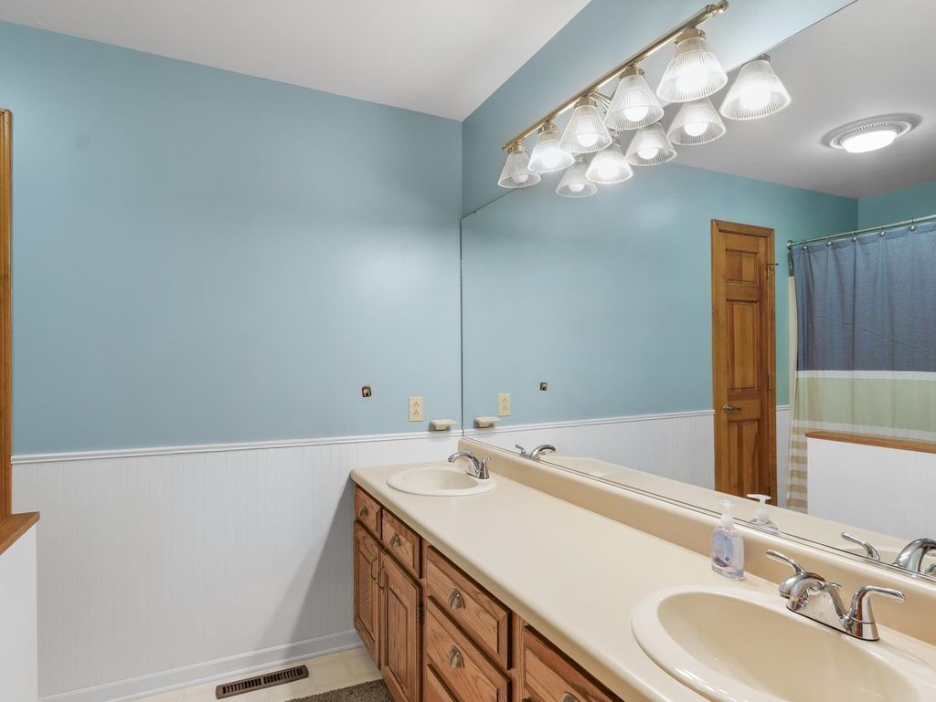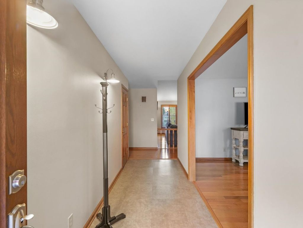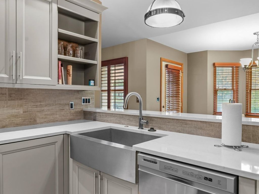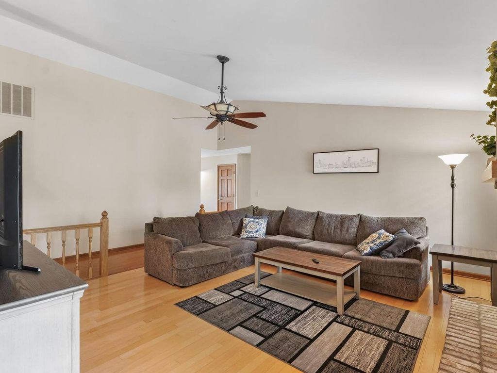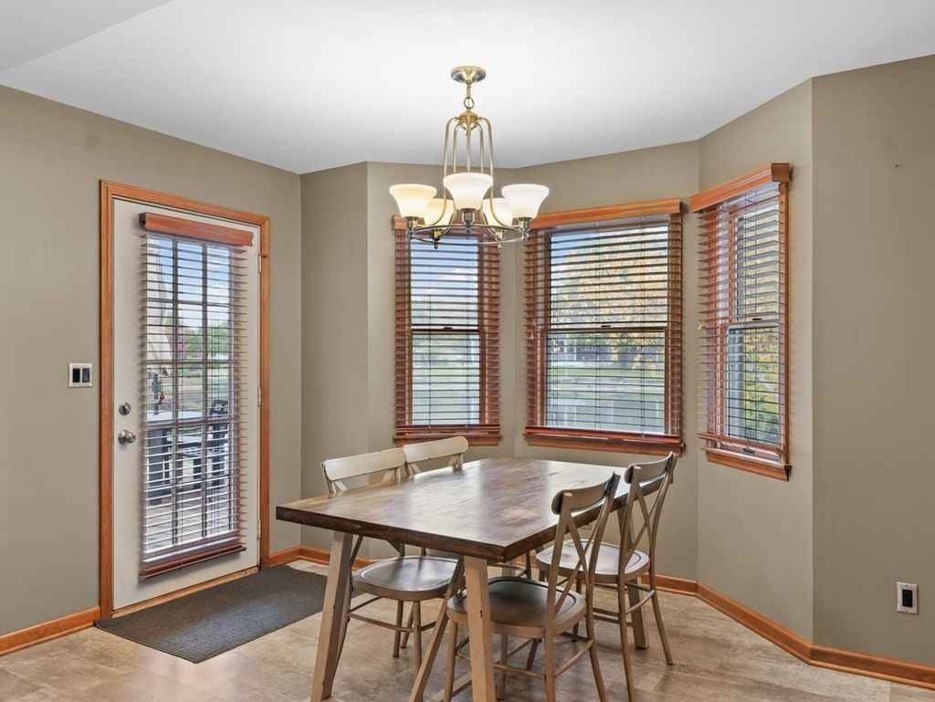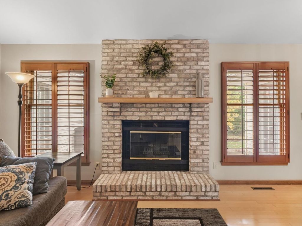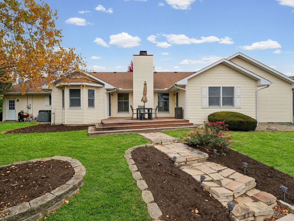 This is the one you have been waiting for! Welcome to this exceptional waterfront ranch in the sought after Chimneys Subdivision. This beautifully maintained brick and sided home offers an open and inviting floor plan while still providing privacy. The spacious living room features a vaulted ceiling, a striking fireplace and picturesque water views. Enjoy additional living space with the front living room and formal dining room, both accented with hardwood floors and natural light. The updated, eat-in kitchen impresses with stainless appliances, solid surface tops, pantry, and an abundance of custom cabinetry, while the breakfast nook provides relaxing morning views with deck access. Providing convenient access to the heated garage is the mudroom with half bath and laundry. The primary suite offers a peaceful retreat with a walk in closet, a private bath with dual vanities, tub/shower and separate shower. Outside enjoy the lush landscaping and large deck overlooking the water. A perfect blend of comfort, style, and location. This is truly the home you have been waiting for.