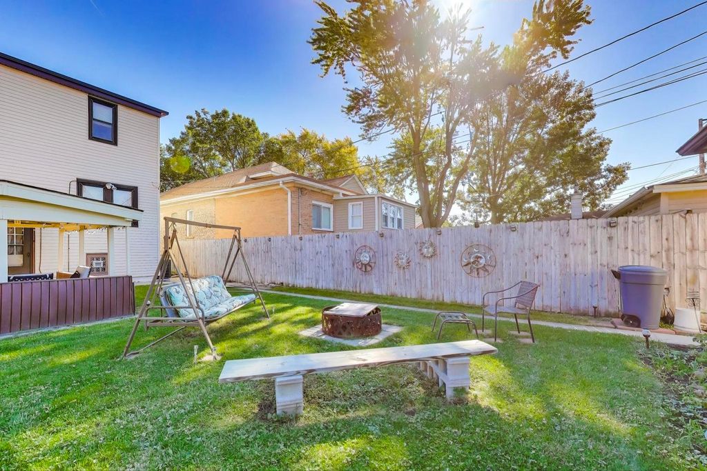 Welcome home! Nestled in the highly sought-after Dunning neighborhood, known for its top-rated schools, parks, and community charm, this stunning two-story A-Frame residence offers 4 bedrooms plus an office, 2 full bathrooms, a finished basement, and a backyard built for entertaining. Step inside to discover a thoughtfully designed floor plan featuring gleaming hardwood floors and abundant natural light throughout. As you approach, you'll be captivated by the home's classic curb appeal and welcoming front foyer, which opens to a spacious living room that seamlessly flows into a formal dining room-perfect for hosting gatherings around an 8-seat table. The sun-filled kitchen is equipped with stainless steel appliances, while the main level also includes a full bath with a tub/shower combo and a convenient first-floor bedroom. Upstairs, you'll find three inviting bedrooms, including a primary suite complete with an updated en-suite bathroom featuring a walk-in shower and single vanity. The fully finished basement offers incredible versatility with ample storage, workshop area, a laundry closet (with side-by-side washer and dryer plus utility sink), an office or potential guest room, and a spacious recreation or family room-ideal for relaxing or entertaining. Outside, enjoy beautifully landscaped grounds with a fire pit area and a covered cabana, perfect for year-round enjoyment. This meticulously maintained home features dual-zone HVAC for optimal comfort and efficiency. Don't miss your chance to make this exceptional property your new home and experience the perfect blend of comfort, style, and functionality.