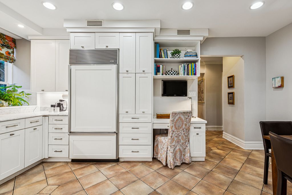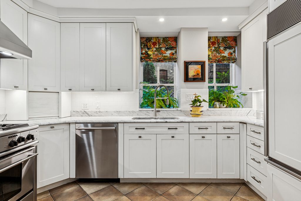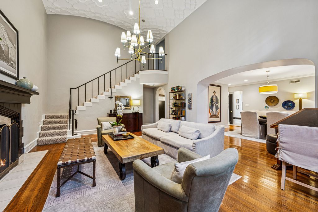 Set in a lush, park-like courtyard on prestigious Cedar Street, this one-of-a-kind duplex residence blends pre-war grandeur with modern updates. Enter through a gracious foyer that opens to a soaring two-story living room with gas fireplace and dramatic staircase leading to the bedroom level above. The main level features a formal dining room with original leaded-glass windows, a chef's kitchen with 4-burner plus griddle gas range, SubZero refrigerator, new dishwasher, and a spacious eat-in area created from the former maid's room. A newly designed butler's pantry offers a 200-bottle wine fridge and additional beverage center, perfect for entertaining. A powder room and laundry room complete this level. Upstairs, the serene primary suite includes a large bedroom, sitting area, and Ann Sacks renovated bath. A spacious guest suite with updated bath provides comfort and privacy. This historic 1929 building is set within landscaped gardens and offers 24-hour door staff, a curated and furnished roof deck, fitness room, landscaped courtyard with gas grills & seating areas and the convenience of a live-in engineer. Pet friendly building. Recently updated with new zoned A/C, this residence combines timeless character with modern living in Chicago's most desirable neighborhood.