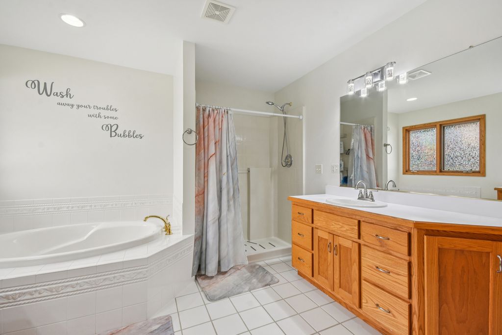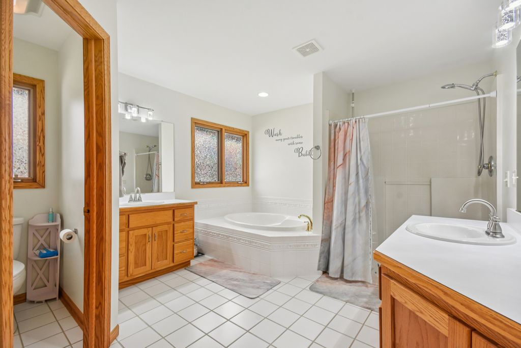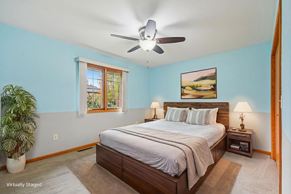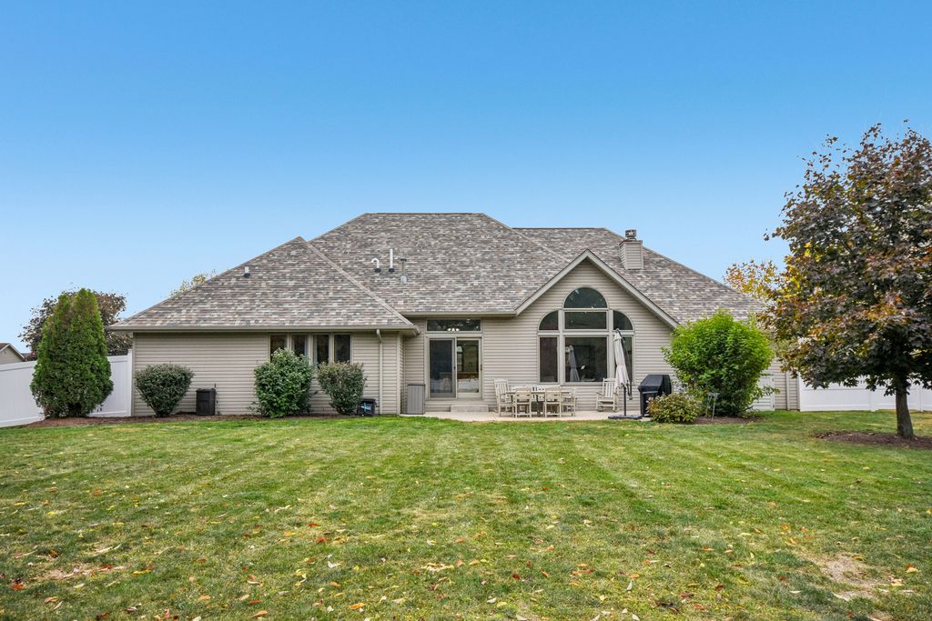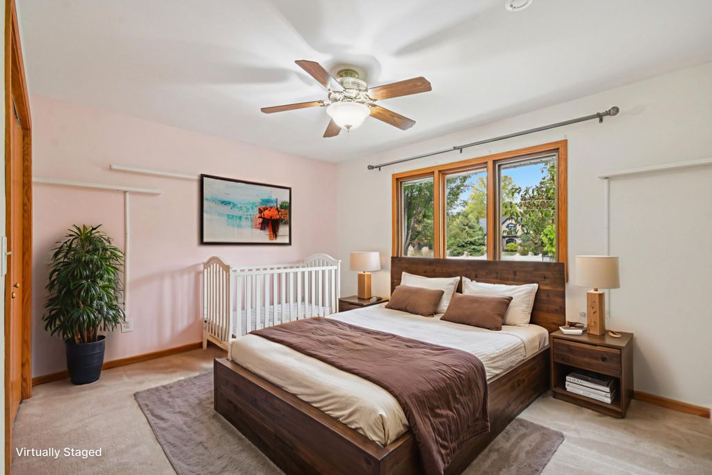Welcome home to this beautifully maintained 4 bedroom, 3.5 bathroom ranch home, situated on over a half-acre lot in the sought-after Saratoga School District. Spanning approximately 3,176 sq. ft., including the finished basement, this home perfectly balances comfort, functionality, and thoughtful updates. The open-concept main level invites you into a spacious living room with vaulted ceilings and a fireplace with gas logs, set against a backdrop of massive windows that fill the space with natural light-ideal for gatherings. The kitchen is a chef's dream, featuring elegant quartz countertops, a stylish herringbone tile backsplash, custom cabinetry, and stainless steel appliances, seamlessly opening into a bright dining area with sliding glass doors leading to the concrete patio. The main-floor primary suite promises relaxation with its dual vanities, a soaking tub, a separate shower, and a generous walk-in closet. Convenience continues with a first-floor laundry room equipped with a utility sink just inside the entrance from the garage. On the second floor, a versatile bonus room serves beautifully as a fourth bedroom. The finished basement offers incredible flexibility, boasting a large recreational room, a dry bar, and a family room currently functioning as a bedroom with an attached bathroom featuring a tile shower, along with plenty of storage space. Step outside to enjoy a private concrete patio, perfect for relaxation or entertaining, overlooking a large, shaded backyard that is fully fenced and backed by serene, neighbor-free views. Situated in a peaceful neighborhood, close to parks, schools, and offering easy access to I-80, this home delivers the ultimate in convenience and comfort. Among the many updates in 2023 are a new roof, quartz countertops, backsplash, stove, exterior soffit lighting, backyard vinyl fence, fresh paint, and a side garage entry. With a new basement bathroom in 2024 and a new water heater in 2025, this home is ready for you to move in with confidence. Best of all, there's no HOA. Don't delay in seeing this move-in-ready gem in one of Morris's most desirable areas!