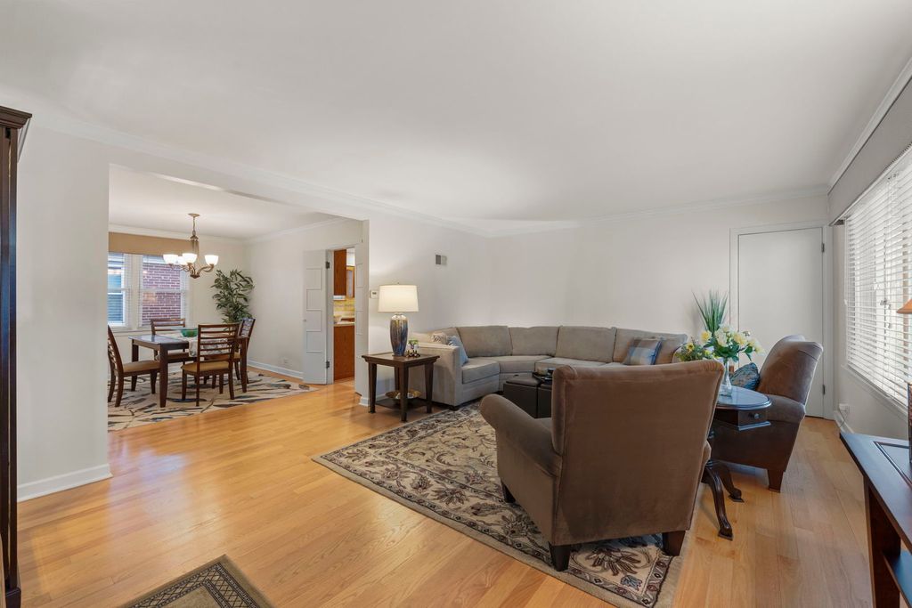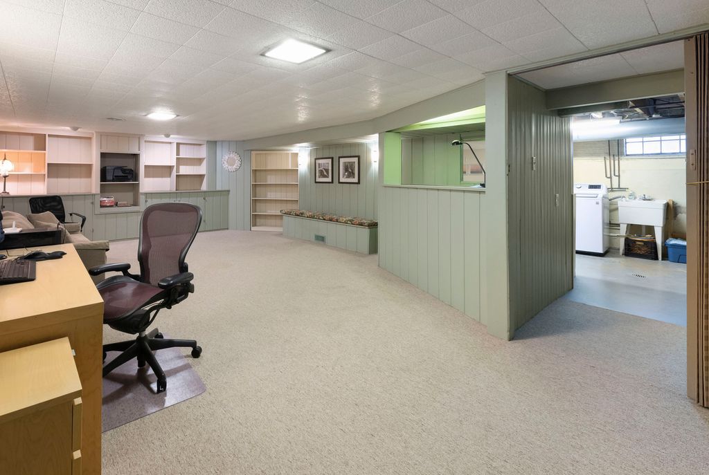 Beautifully Maintained Brick Ranch in a Quiet Neighborhood! This solid brick ranch is as charming as it is move-in ready. Thoughtfully updated and meticulously cared for, it offers a perfect blend of comfort, function, and style. Recent updates include a new roof (2022), water heater (2023), washer/dryer (2023), refrigerator (2021) and dishwasher (2023). The living and dining rooms feature newer hardwood flooring and crown molding (2017), adding a touch of elegance. The main level includes two spacious bedrooms with double closets and abundant natural light. The primary bedroom offers blackout blinds, while the second bedroom features custom built-in shelving. The hall bath, fully renovated in 2012, boasts stylish tile work, a modern vanity with ample storage, and a large linen closet. The kitchen is bright and functional with a large window over the sink, solid oak cabinetry, Corian countertops, and newer stainless steel appliances. A matching oak built-in adds even more storage and workspace. A family room addition (2005) elevates this home with its inviting design-featuring a wet bar, custom built-ins, and an additional half bath. Expansive French doors and a fixed picture window showcase the stunning backyard sanctuary and open to the oversized 28' x 14' deck. Enjoy outdoor living with a retractable SunSetter awning, ideal for grilling, dining, or relaxing with your morning coffee. The 200-amp electric service and 220 line are already in place for a future hot tub. The full basement exudes mid-century character with a cozy family room, bar, and built-ins, plus a laundry area with plenty of storage and a third bedroom with tongue-and-groove knotty pine paneling. A concrete driveway provides off-street parking for one car, with additional parking available on the street. Conveniently located within walking distance to schools, shopping, and parks, this home has it all. Welcome home!!