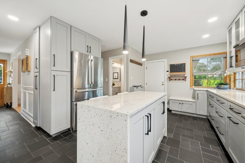 Make your move to downtown Arlington Heights....Beautifully updated move-in ready and full of high-end details, this 4 bed/2.5 bath home combines modern style with everyday family comfort. Highlights include a 2023 chef's kitchen with Pitaya white granite countertops, marble backsplash, and Bosch/Bertazzoni appliances. The dining room features a bold white marble accent wall and new canned lighting, while the updated half bath adds luxury touches with a Japanese smart toilet and stone finishes. In 2025, the home gained elegant wainscoting, crown molding, a redesigned staircase and refinished hardwood floors, further enhancing its fresh, modern look. A fully finished basement completes the home with a movie room, playroom, and home gym - offering versatility for every lifestyle. Outdoors, a stunning paver patio, wrought iron fence, and professional landscaping create the perfect space for entertaining and relaxation. Two car attached garage. Stylish, functional, and ideally located close to everything - downtown restaurants/shops and train. Don't miss seeing this home!