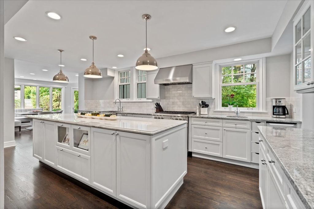 Set on a beautifully landscaped half-acre lot with a circular drive, 2276 Linden is a stunning Georgian residence that blends classic character with thoughtful updates and modern luxury. With exceptional curb appeal, this meticulously maintained home offers an inviting layout ideal for both everyday living and elegant entertaining. Inside, the formal living room featuring an elegant fireplace and the spacious dining room are complemented by a sun-filled breakfast area, a cozy family room with a gas fireplace off the kitchen, and a charming sunroom/secondary family room. The gourmet chef's kitchen is a true standout, featuring premium appliances including two Miele dishwashers, Wolf six-burner cooktop and oven, Thermador double oven, Sub-Zero side-by-side refrigerator/freezer plus Sub-Zero refrigerator/freezer drawers, and a Dacor warming drawer. Upstairs, the luxurious primary suite impresses with a large walk-in closet, sitting area or office, and access to a private outdoor retreat. The spa-quality marble bath features a steam shower, jacuzzi tub, and custom built-ins. Two additional bedrooms share a full bath, and a convenient second-floor laundry room completes this level. The third floor adds versatility with a spacious playroom, two more bedrooms - one with en-suite bathroom - plus another full hall bath - just perfect for guests, teens, or extended family. The finished basement offers even more living space, including a recreation room, powder room, exercise area, secondary laundry, and generous storage. Outside, enjoy extensive landscaping with an irrigation system, a 3-car heated attached garage with 9-foot doors, and a backup generator for peace of mind. Ideally located near town, the lake, and the train, this exceptional property combines timeless architectural charm with every modern comfort-an unparalleled opportunity to own a true North Shore classic.