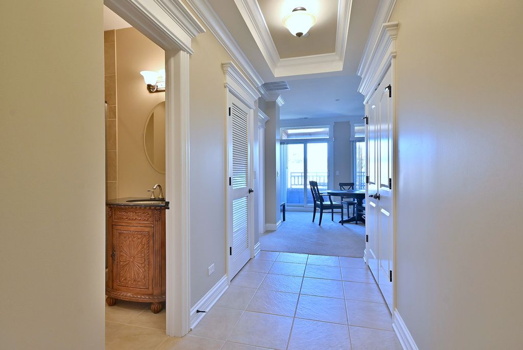 This beautifully designed 2-bedroom, 2-bath condo boasts a spacious kitchen that seamlessly flows into the dining area and living room creating the perfect entertainment area. The kitchen features 42" cabinets, granite countertops, a breakfast bar, stainless steel appliances, and under-cabinet lighting.. The master bedroom includes a private luxury bath with a whirlpool tub, double sinks, upgraded cabinetry, ceramic flooring, and a large luxury master suite. Highlights of this stunning condo include seamless double crown molding, upgraded light fixtures, and modern white trim throughout. Freshly painted interiors and new carpeting add a modern touch. Relax and entertain on the balcony overlooking downtown Itasca and the Itasca Country Club that is just at the end of the block. This immaculate, secure building offers a heated parking garage, elevator access, and an impressive lobby entrance with extra outdoor parking. Super clean building, very intimate atmosphere surrounded by restaurants, the park district, the library, the pool, stores, and public transportation. Multiple extra parking spots outside