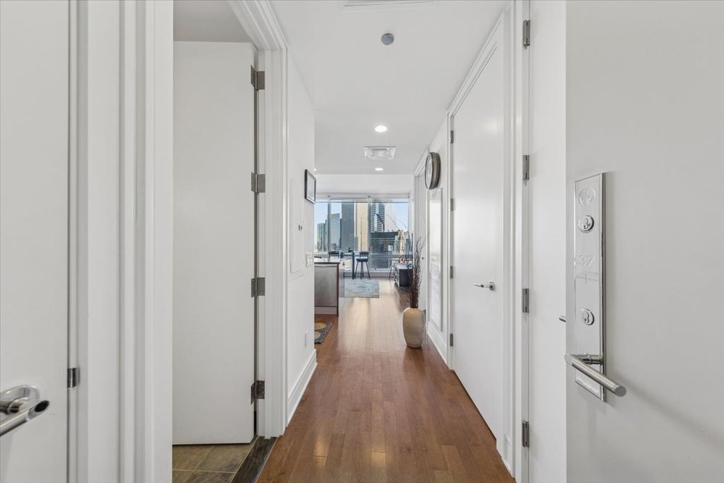 Experience unparalleled luxury and sweeping city views from this exquisite 1-bedroom, 1.5-bath residence perched on the prestigious 37th floor of the iconic Trump Tower Chicago. Perfectly positioned-not too high, not too low-this level is coveted for its truly cinematic perspective: a seamless panorama of the Chicago River, Lake Michigan, and the architectural brilliance of downtown Chicago. Watch the city come alive from sunrise to sunset, and enjoy front-row seats to Navy Pier's fireworks right from your living room. From the moment you enter, you're captivated by floor-to-ceiling windows that span the entire width of the home, flooding the space with natural light and framing unforgettable views. Soaring ceilings and gleaming hardwood floors create an atmosphere of modern elegance, while the crisp white walls offer a perfect canvas that highlights the home's stunning finishes. The chef's kitchen impresses with granite countertops, high-end stainless steel appliances, gas cooktop with sleek hood, and a panel-front dishwasher that blends seamlessly with the cabinetry. The spacious living area flows effortlessly toward the glass-lined backdrop, creating an ideal setting for both relaxing and entertaining. The serene primary suite mirrors the spectacular views and features a custom walk-in closet and a spa-caliber bathroom with a deep soaking tub, separate glass shower, and full-height stone tile. A stylish half bath, in-unit laundry, and additional storage complete the thoughtful layout. Residents enjoy an exclusive entrance and private elevators separate from the hotel, along with world-class amenities including 24-hour security, doorman and concierge services, a state-of-the-art health club, indoor pool, and access to the award-winning Trump Spa. Multiple dining and cocktail venues await within the tower-most notably Terrace 16, offering open-air dining and some of the best skyline and river views in the city. Situated along the Riverwalk and steps from Chicago's most celebrated shopping, dining, and entertainment destinations, this residence offers the best of luxury living and urban convenience in one of the city's most prestigious addresses.