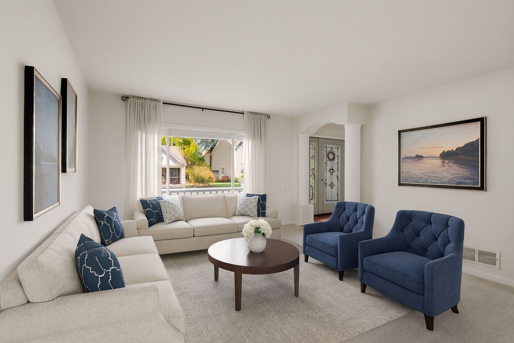 Beautifully maintained home in the desirable Chesapeake Farms subdivision featuring 3 bedrooms, 2.5 baths, and a heated attached 2-car garage. This move-in-ready home offers vaulted ceilings in the family room, an updated kitchen with quartz countertops, a peninsula, and stainless steel appliances, plus fully updated bathrooms with quartz counters. Enjoy outdoor living on the low-maintenance deck overlooking the fenced backyard and tranquil pond. Additional highlights include a newer roof, meticulous upkeep, and a quiet street location close to parks, schools, and shopping.