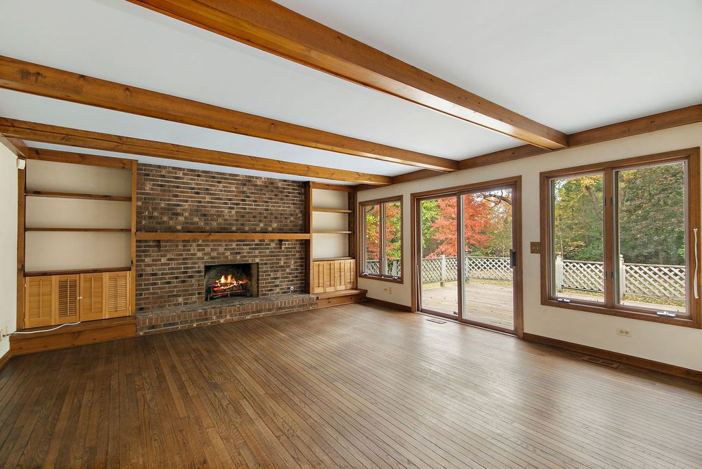 Set on a picturesque 1.38-acre lot surrounded by nature's beauty, this classic West Dundee home offers timeless charm, abundant privacy, and endless potential. A tree-lined driveway welcomes you home, framed by towering maples, weeping pine trees, and a variety of native evergreens that create a tranquil, park-like setting. Inside, the traditional floor plan invites warmth and comfort. The family room-complete with a cozy brick fireplace and striking wood-beamed ceiling-is the heart of the home, perfect for gatherings and relaxing evenings. The primary bedroom and third bedroom feature cathedral ceilings, filling each space with natural light and architectural character. While the kitchen, bathrooms, and bedrooms are ready for modern updates, these spaces offer an exciting opportunity to design your dream interiors while preserving the home's inviting, traditional charm. Step outside to enjoy your own private retreat. The expansive deck overlooks a lush backyard surrounded by mature trees, offering the ideal setting for outdoor dining, entertaining, or simply soaking in the peace and privacy of your surroundings. With its scenic wooded backdrop, private setting, and classic design, 35W788 Burr Oak Lane is a rare find-ready for your vision and creativity to bring it to life. A beautiful blend of character, space, and opportunity: your next chapter begins here. Being Sold AS-IS