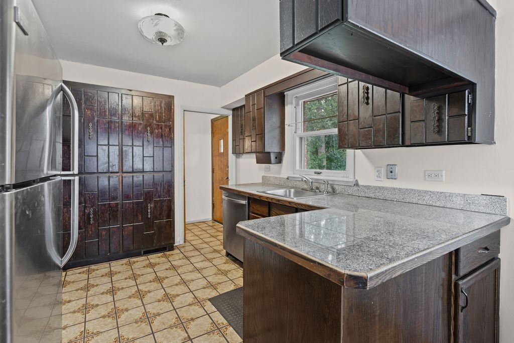 Near Patriot's Park and Downers Grove Swim and Racquet Club! Handyman special Brick Ranch 3 bedroom, 2 bath with a two-car detached garage, fenced yard, and patio. The lot measures 75 x 150 feet. The property features a large laundry area and a second kitchen in the basement. The roof was replaced in 2024 following a tree incident last year. Additionally, a new furnace and central air conditioning were installed in 2023. The home was purchased 30 years ago with current foundation issues. It is being sold as-is, along with all appliances, which are also sold as-is. Please note that the property is under video surveillance. Property is in flood zone and insured.