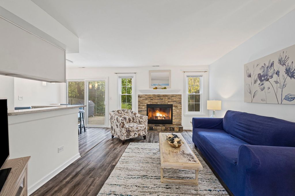 Welcome to you new Home in Beautiful Island Lake! This freshly remodeled 3 BR, 1.5 Bath townhome has all the modern touches you've been looking for. The main level features bright, updated kitchen with white shaker cabinets, quartz counters, subway tile backsplash, and SS appliances--perfect for cooking and entertaining. The cozy Family Room has a gorgeous stone FP, Newer Luxury Vinyl Flooring and open to Kitchen . Enjoy additional front room with Bay Window perfect for Dining/Office space. Upstairs, you'll find 3 Bedrooms with generous closets with built=in shelving and NEW luxury Vinyl flooring. Plus a stylishly updated Full Bath. Step out back to enjoy your floating wood deck overlooking peaceful green space--an ideal spot for relaxing or grilling! With NEW windows and vinyl siding, and LOW association fees, this home is truly MOVE-IN ready. All you need to do is unpack and enjoy.