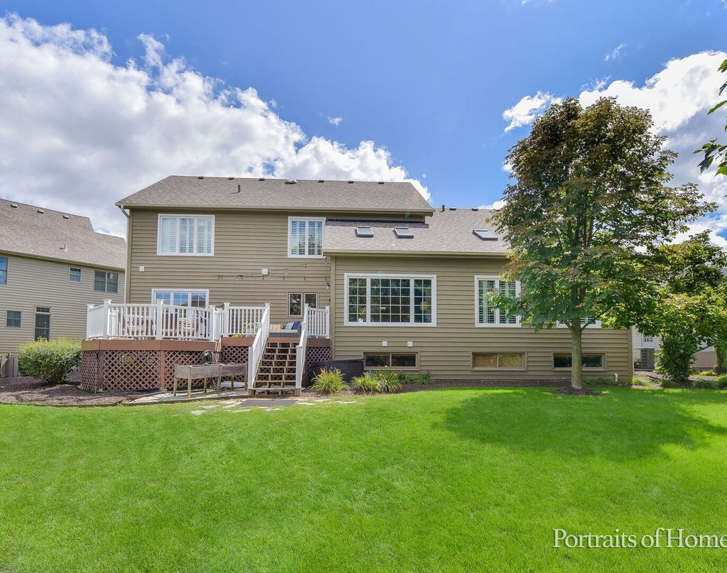 Welcome to 4007 Heron Court, located in the highly desirable Prairie Crossing subdivision in Naperville's coveted School District 204, with Neuqua Valley High School. Tucked away on a quiet cul-de-sac, this stunning home offers nearly 3,300 square feet (not including the finished English basement with 2 additional bedrooms) of living space. Enjoy a traditional layout with a formal living and dining room, a first-floor office, and a convenient first-floor laundry room. As you step inside, you'll be greeted by a dramatic two-story foyer filled with natural light, leading you to a spacious two-story family room with a vaulted ceiling, fireplace, and skylights. The heart of the home, the kitchen, boasts ample cabinetry, stainless steel appliances, granite countertops, and a walk-in pantry. A beautiful sunroom, with its vaulted ceiling and many windows, offers a cozy space to relax. The first floor also features nine-foot ceilings and hardwood floors. Upstairs, you'll find four generously sized bedrooms and three full bathrooms. The home is completed with a finished English basement, which includes a recreational room, two additional bedrooms, and a full bathroom. The expansive, fenced-in backyard is perfect for outdoor entertainment, featuring a large deck and mature landscaping for privacy. Recent updates include Roof and Gutters 2019, Exterior Painted 2020, HVAC 2019, Windows 2016-2017.
